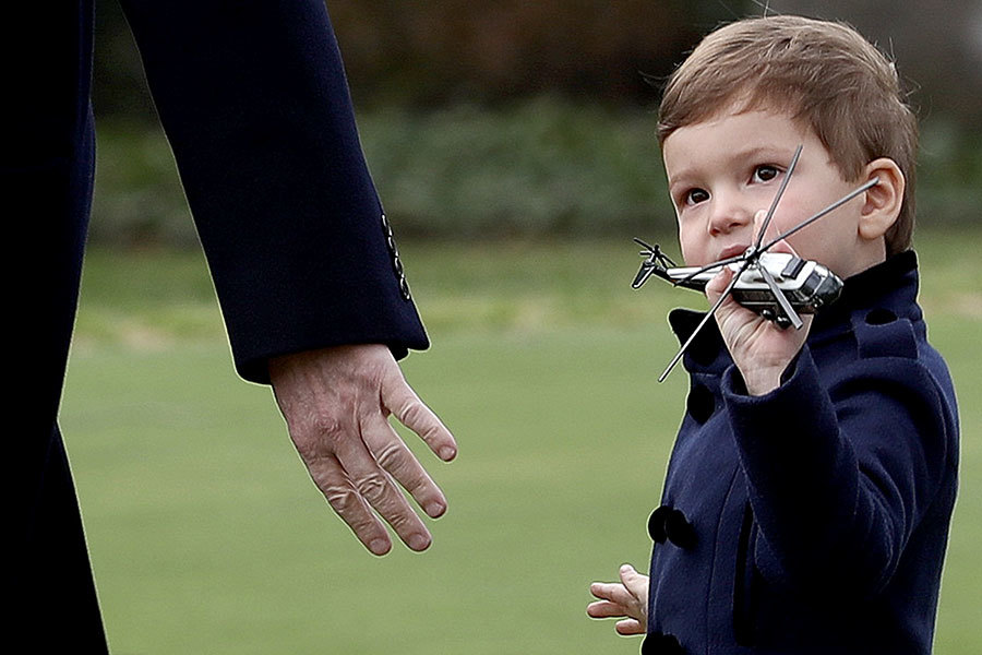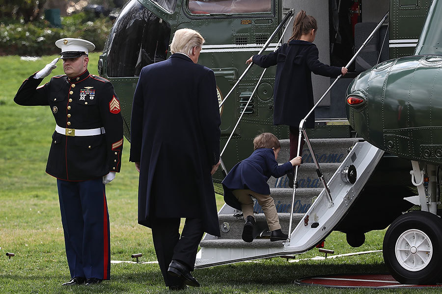 並非每個小男孩都有機會獲得美國「海軍陸戰隊一號」的直昇機玩具。特朗普大女兒伊萬卡的大兒子約瑟芬・庫什納則是為數不多的幸運兒之一,不僅可以擁有總統專機的玩具,還得以牽著外公特朗普的手,登上海軍陸戰隊一號直升機。