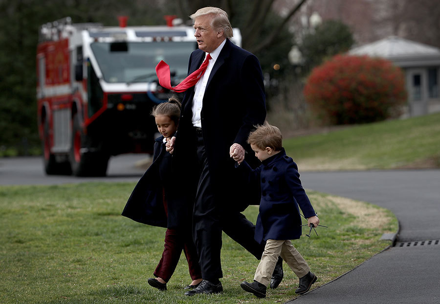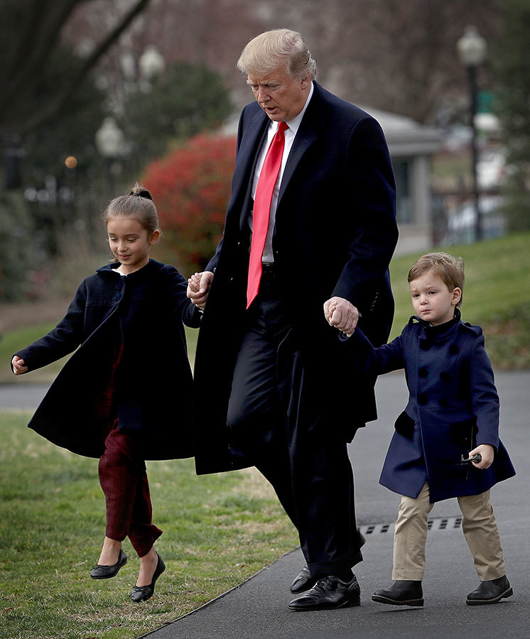 據《每日郵報》報道,周五(3月3日),美國總統特朗普一手牽著伊萬卡三歲的兒子約瑟芬・庫什納,另一手牽著伊萬卡的大女兒阿拉貝拉,在白宮草坪登上海軍陸戰隊一號總統專機。而約瑟芬還帶著自己的海軍陸戰隊一號玩具,模樣十分可愛。伊萬卡和庫什納緊隨其後。