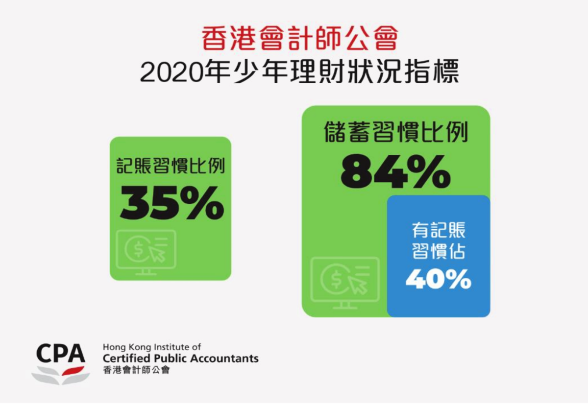 香港會計師公會近日公佈了「2020年少年理財調查」,結果顯示,接受訪問的初中及高小學生中84%有儲蓄習慣,然而,有儲蓄習慣的學生中,只有40%人有記賬習慣;而所有受訪學生中,僅有35%人有記賬的習慣。此外,很多小朋友在求學年齡已有向人借錢或借錢給別人的經驗。