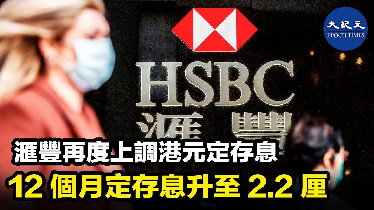 滙豐銀行再度調高港元定期存款息率,12個月定存息已上升至2.2厘。@