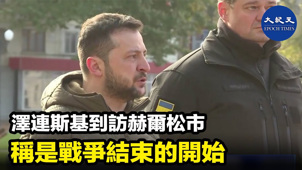 烏克蘭總統澤連斯基周一(14日)到訪被烏軍奪回的南部城市赫爾松,他形容俄軍撤出赫爾松是戰爭結束的開始。@