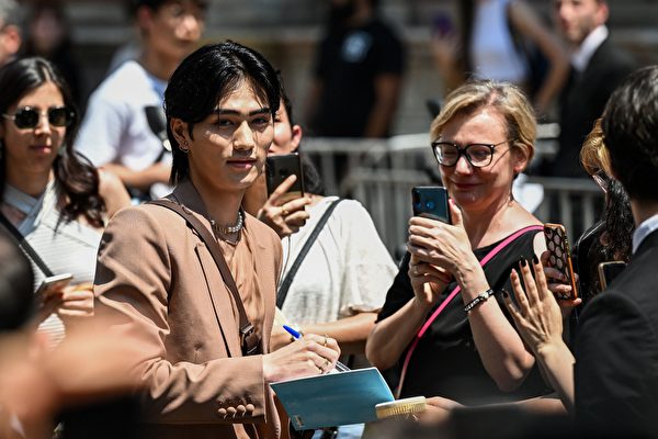 2023年6月16日,米蘭時裝周期間,中國演員楊洋在Valentino 2023春夏男裝時裝表演上揮手向觀眾致意。(Andreas Solaro/AFP/Getty Images)