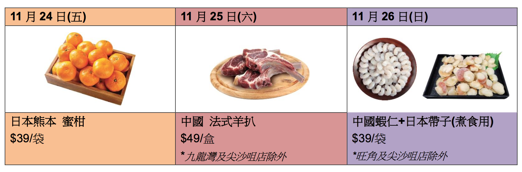 推廣日期:11月24日至11月26日
