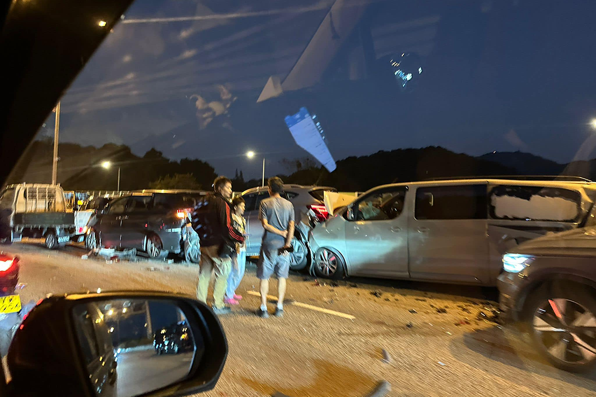 吐露港公路今日(2日)傍晚發生一宗交通意外,有10輛車相撞,包括7輛私家車、2輛輕貨、1輛中貨,有11人受傷,分別被送往那打素醫院和威爾斯親王醫院治理。