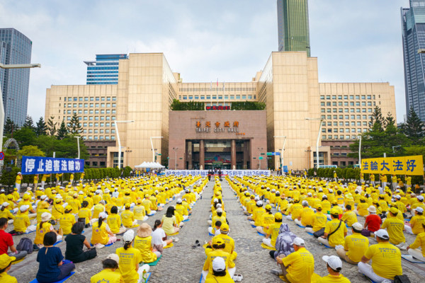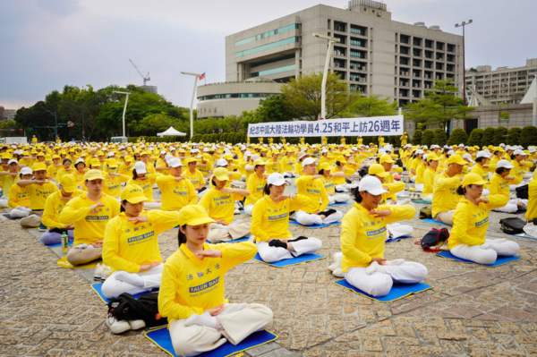 法輪功學員每年都會舉行「4‧25萬人上訪」事件紀念活動。今年,有千名部份法輪功學員前往台北市政府市民廣場舉行記者會,會中台北市議員洪健益、張文潔、新竹市議員曾資程、簡舒培議員辦公室鍾姓主任、劉建國委員辦公室周姓主任皆出席活動給予支持。