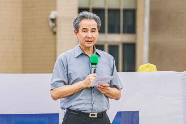 2025年4月19日,台灣營救受迫害法輪功學員協會理事長許凱雄教授。(趙郁誠/大紀元)