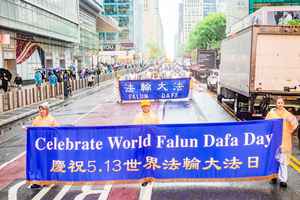 每年五月初,紐約曼哈頓都會迎來一場盛大的遊行,有旌旗招展,有樂聲嘹亮,還有成百上千身穿金黃色服裝、手持橫額的法輪大法修煉者,走過一條條街巷,為這美麗的春日增添一抹亮麗的色彩。