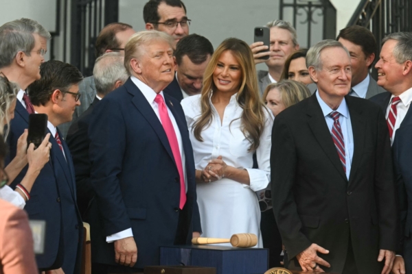 7月4日(周五)是美國獨立日,第一夫人梅拉尼婭身穿Thom Browne品牌白色襯衫裙裝出席白宮舉行的獨立日慶祝活動,她也出席了特朗普總統當天簽署《大而美法案》(全面減稅法案)的儀式。