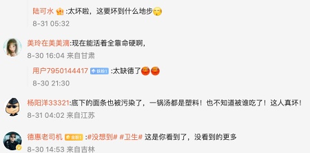 很多網民看到這段影片,覺得很震驚:「第一次見這麼煮水餃的,震驚我了,包裝袋多髒啊,裏面有多少不明物,不知道鍋裏有多少包裝袋的食品被這樣煮,太可怕了,不親眼見,都不知道餐館就是這麼忽悠顧客的,這樣誰還敢吃?」