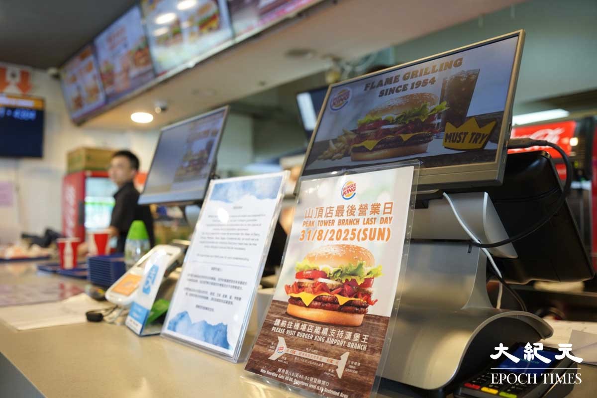 本港食肆結業潮未止,快餐店Burger King山頂凌霄閣分店上周日(8月31日)結業,目前全港只剩下機場離境大堂分店。有員工向本報記者透露,由於商場需要翻新,所以與業主商討後結束租約。他又指山頂店以遊客為主要客群,但現今遊客消費模式改變,許多人更謹慎消費。再加上許多港人選擇離港消費,生意不如以往。