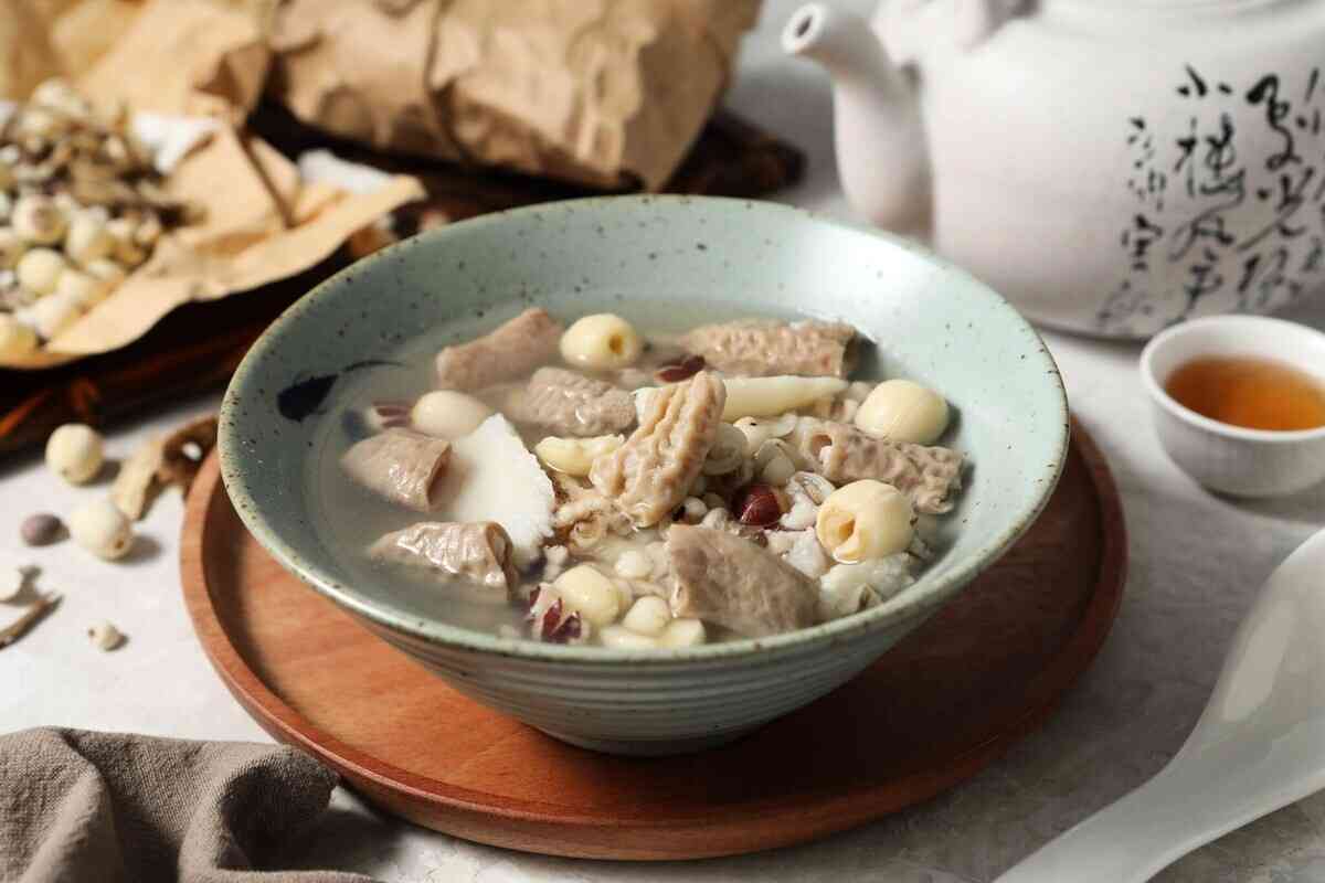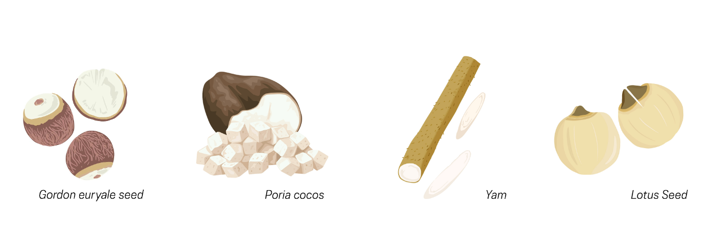 傳統四神湯由淮山(淮山)、蓮子、芡實與茯苓四味藥食同源食材組成,皆性平味甘,具有健脾益腎、收斂止瀉之效。研究證實,茯苓中的多醣可透過調節腸道菌叢與增強腸黏膜屏障功能,有效改善抗生素相關性腹瀉,改善免疫與代謝調節。另一項研究發現,淮山多醣能抑制發炎、保護腸道。