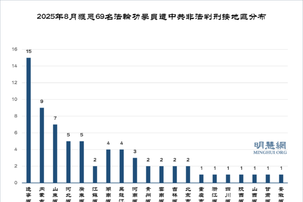 明慧網8月獲悉,又有至少69名法輪功學員被中共法院非法判刑。其中2025年35人,其餘的主要在2016年至2024年間。