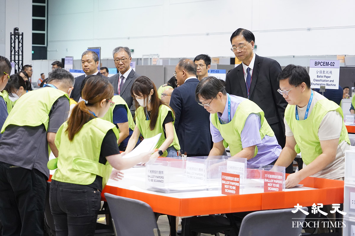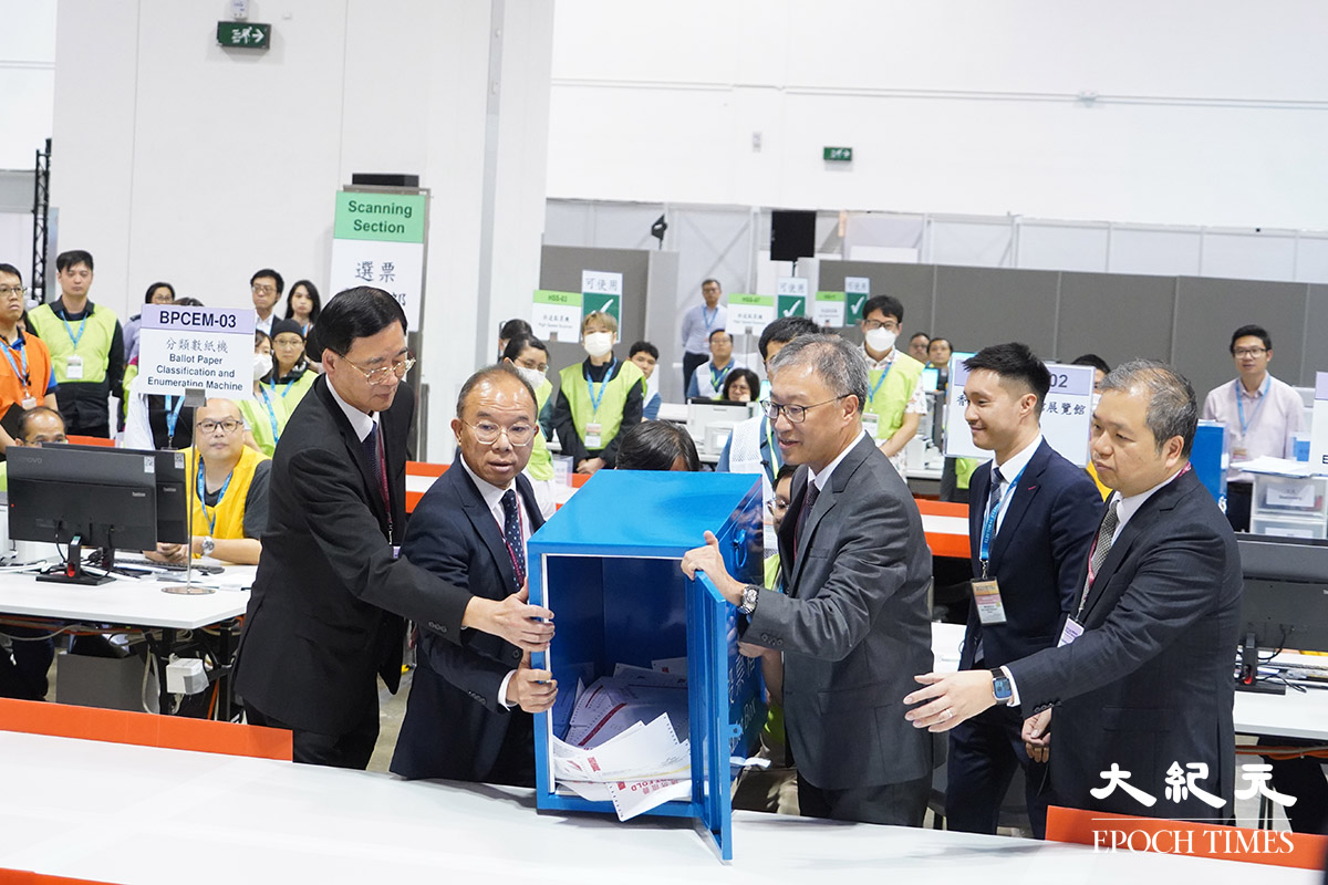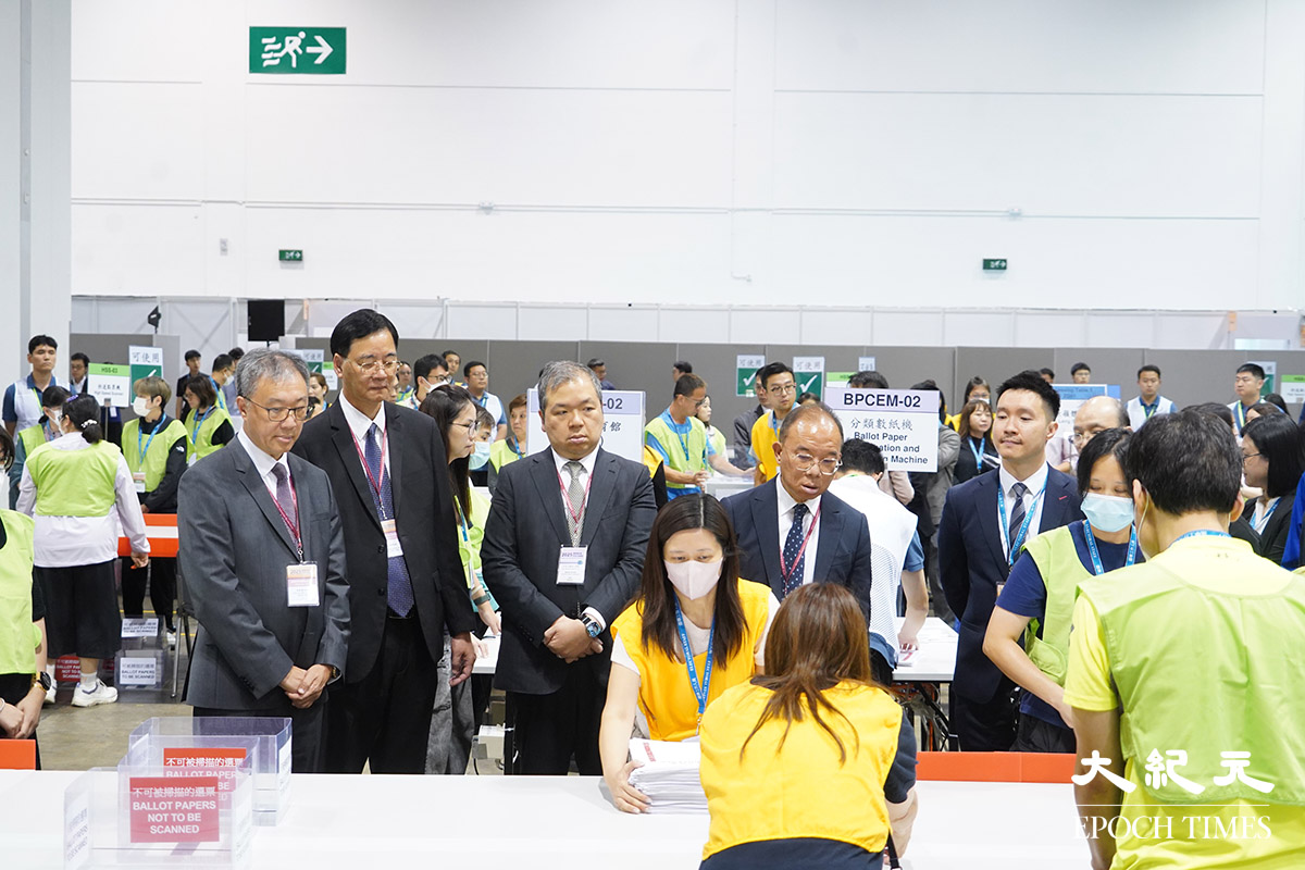 選舉結束後,選管會主席陸啟康、政制及內地事務局局長曾國衞等人,去到灣仔會展的中央點票站,並一同倒票。