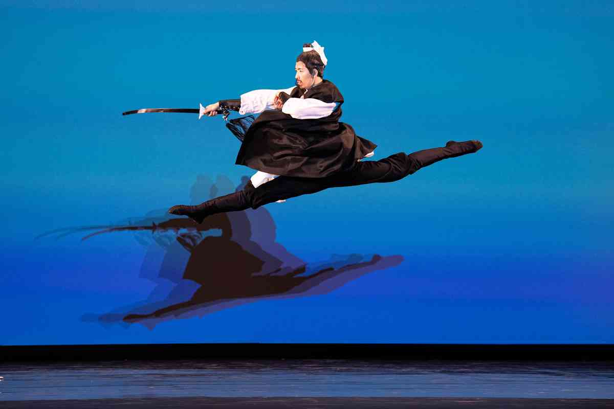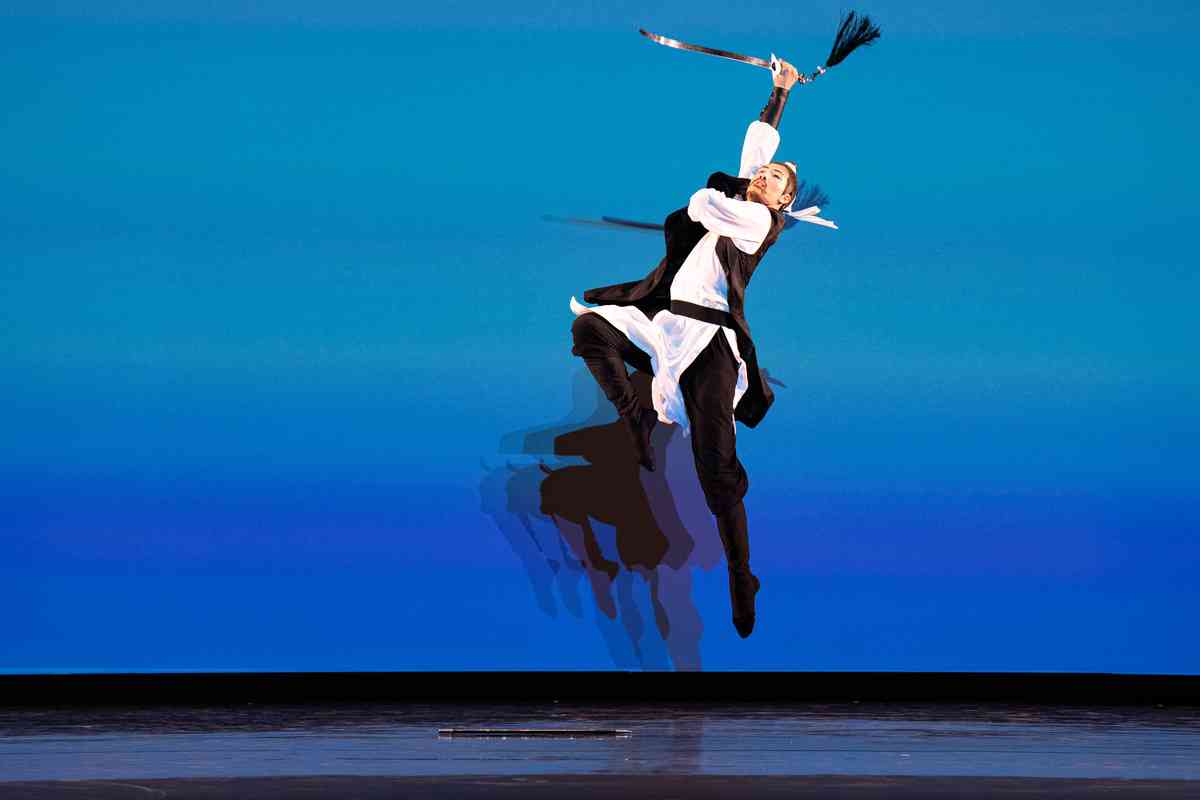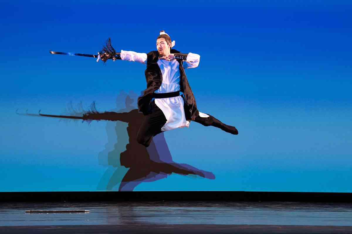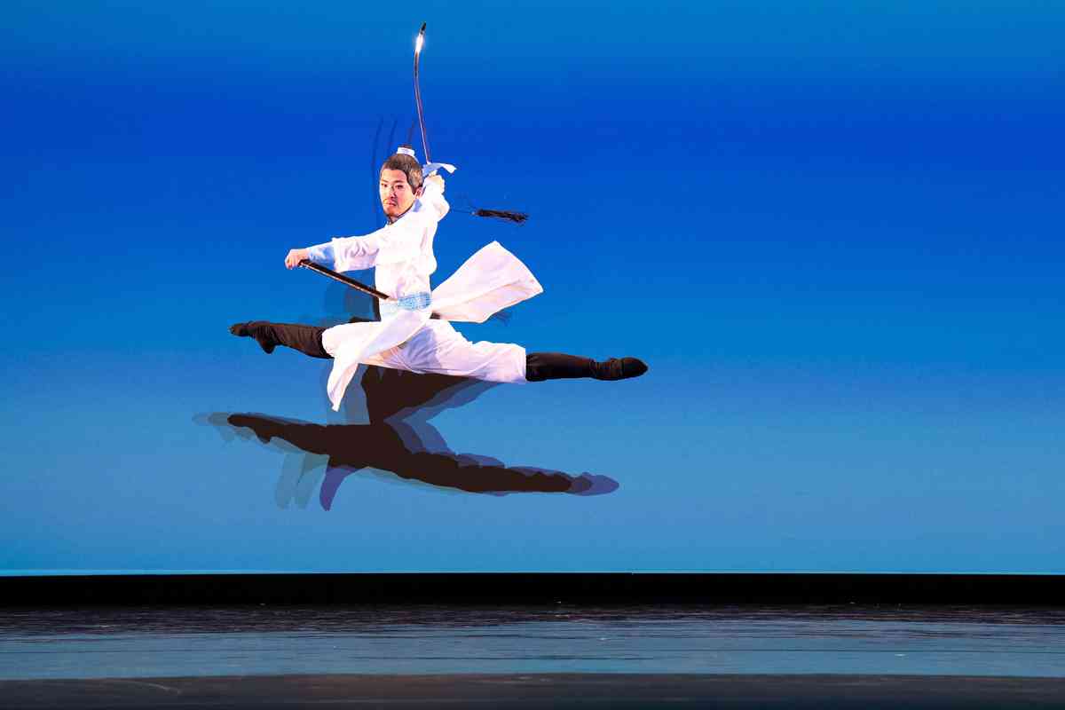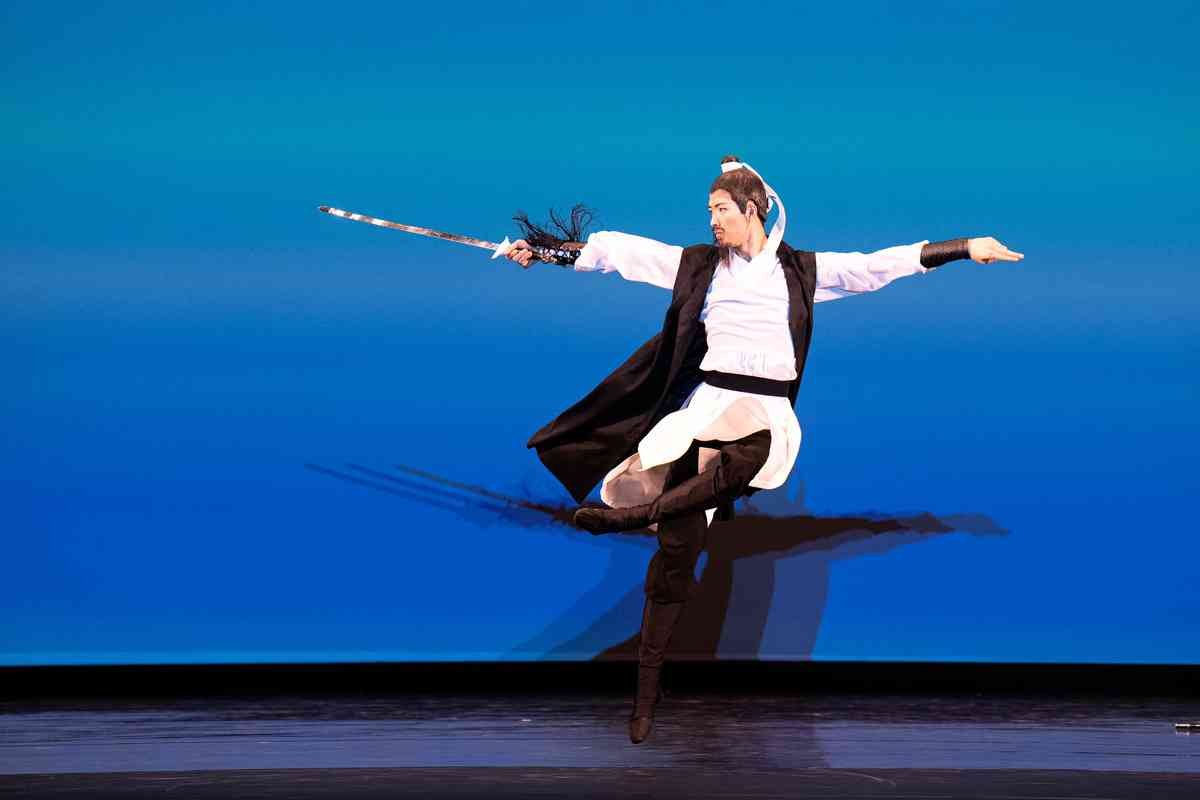 2025年9月12日,第十一屆新唐人全世界中國古典舞大賽青年男子組初賽在美國紐約州Sugar Loaf表演藝術中心舉行。圖為青年男子組參賽選手劉祥來表演舞蹈《醉裏挑燈看劍》。(戴兵/大紀元)