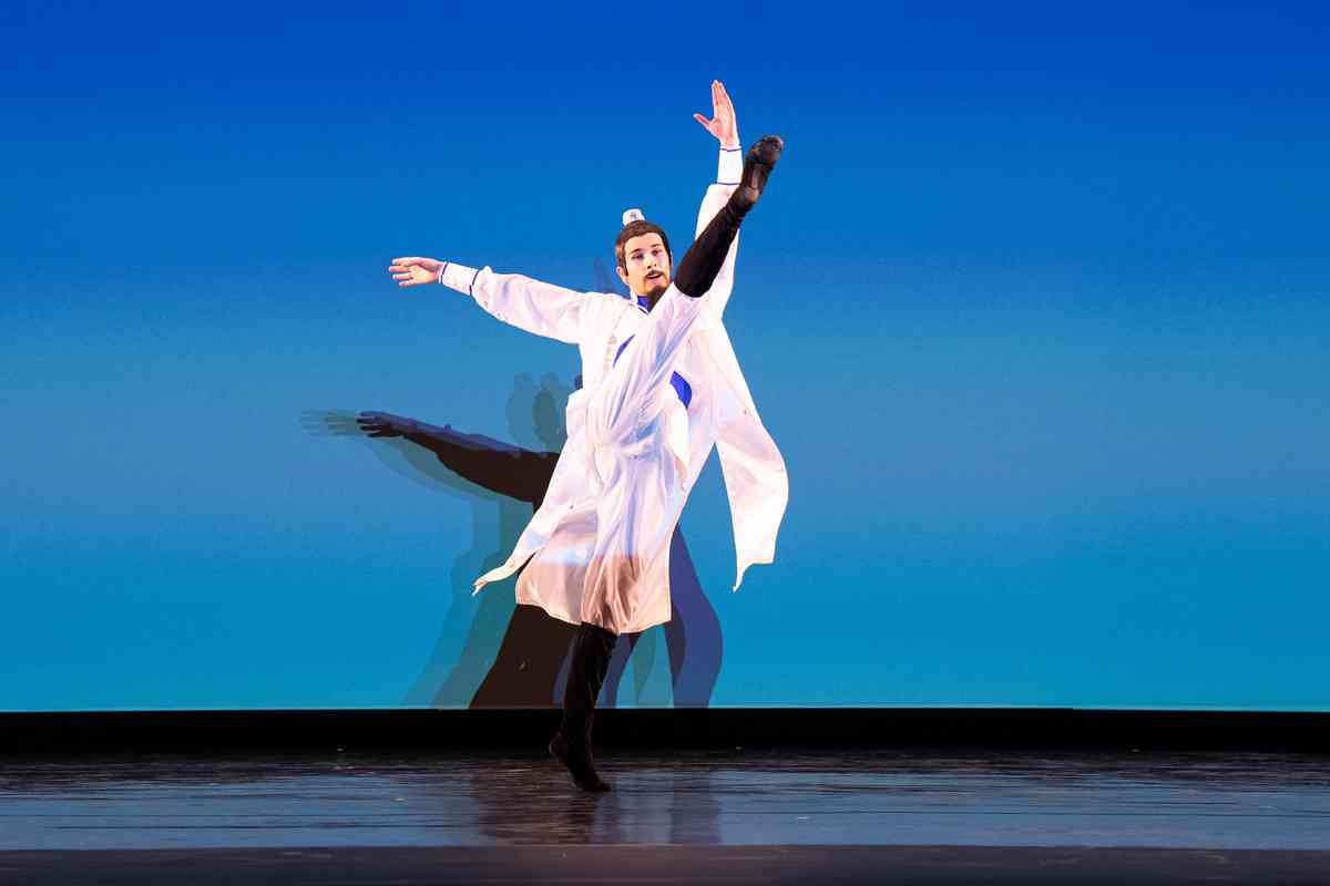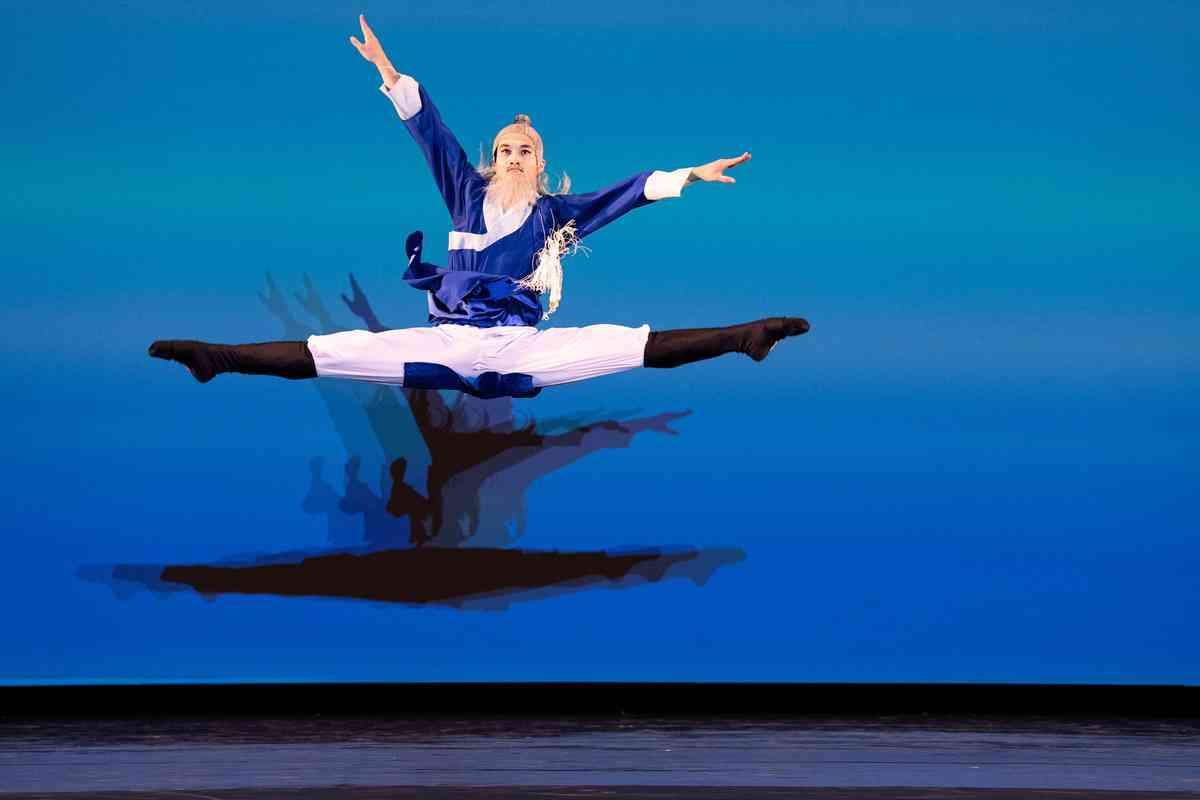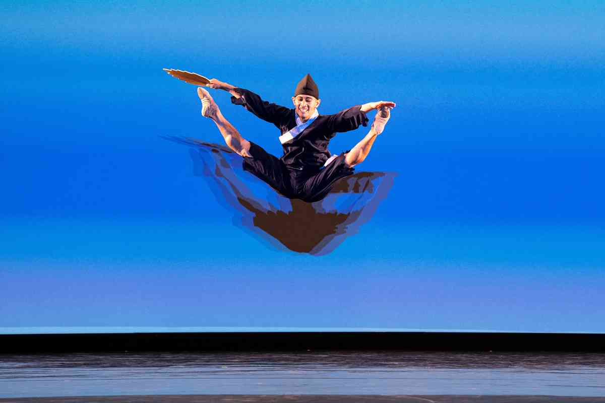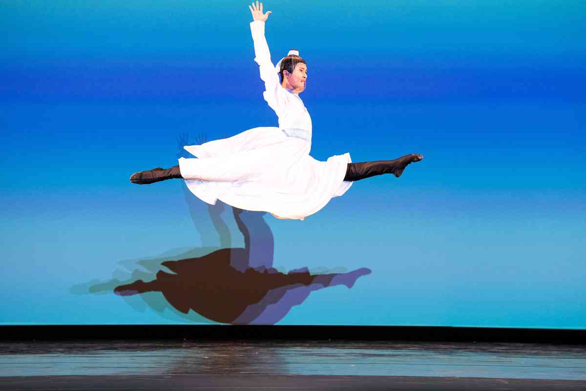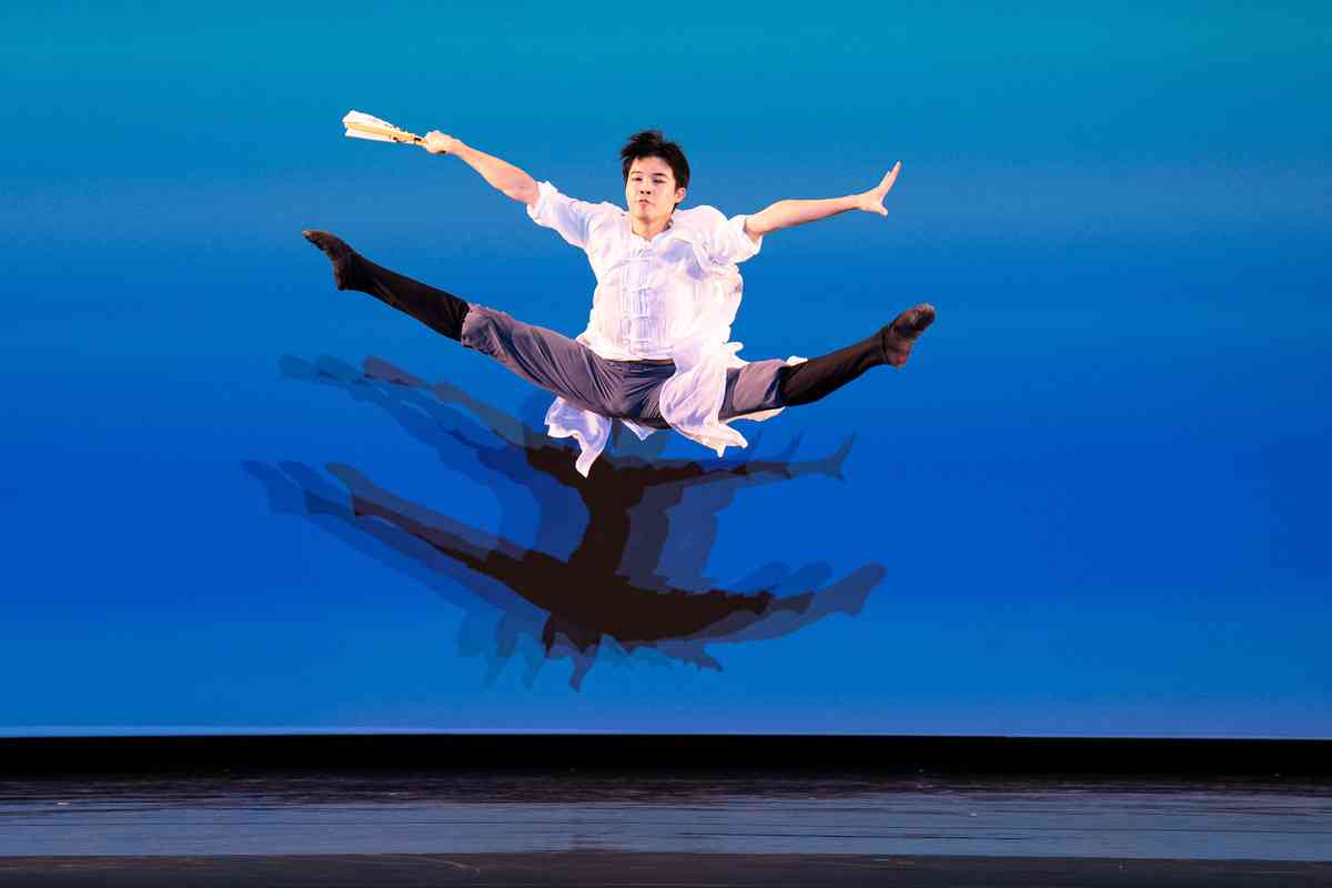 2025年9月12日,第十一屆新唐人全世界中國古典舞大賽青年男子組初賽在美國紐約州Sugar Loaf表演藝術中心舉行。圖為青年男子組參賽選手詹品俊表演舞蹈《翩若驚鴻》。(戴兵/大紀元)