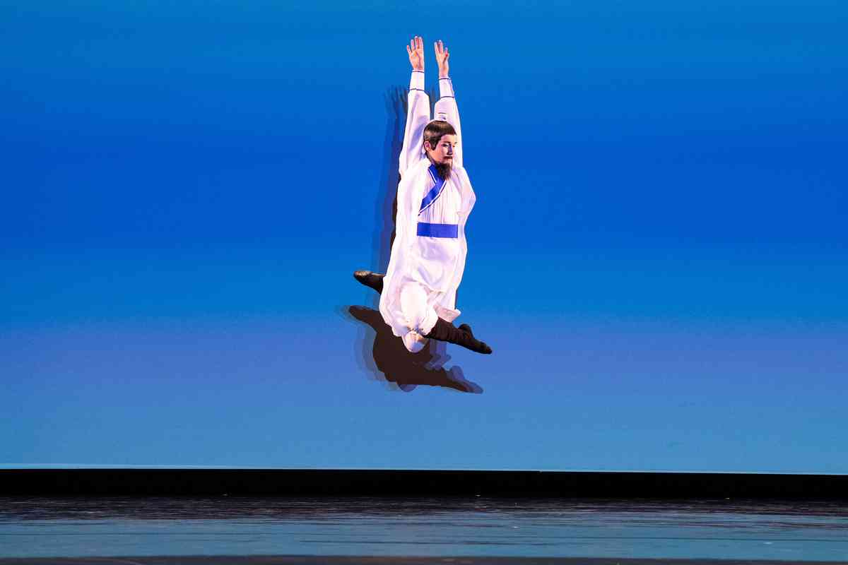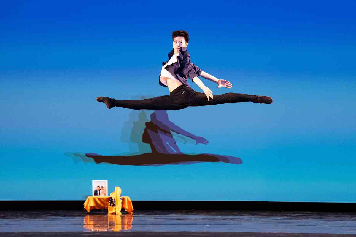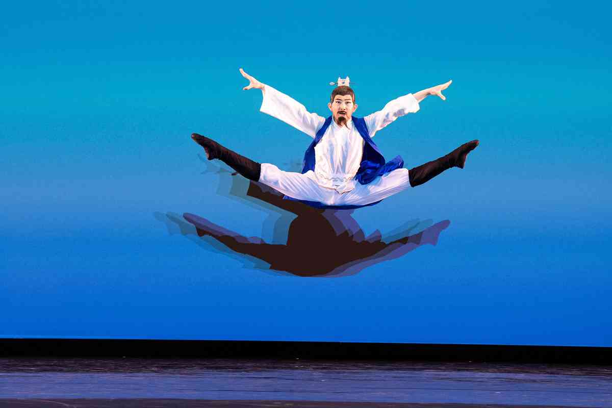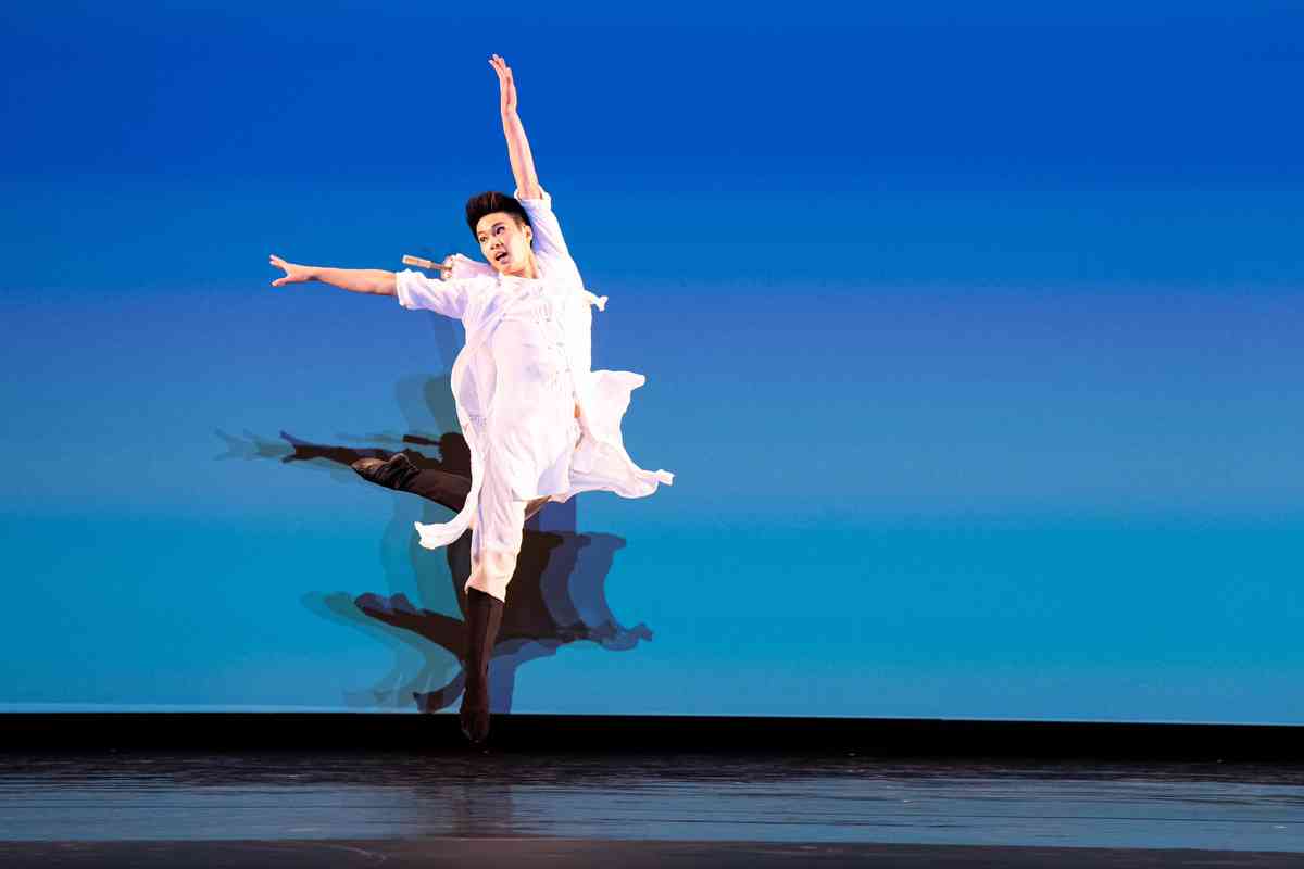 2025年9月12日,第十一屆新唐人全世界中國古典舞大賽青年男子組初賽在美國紐約州Sugar Loaf表演藝術中心舉行。圖為青年男子組參賽選手詹品俊表演舞蹈《翩若驚鴻》。(戴兵/大紀元)