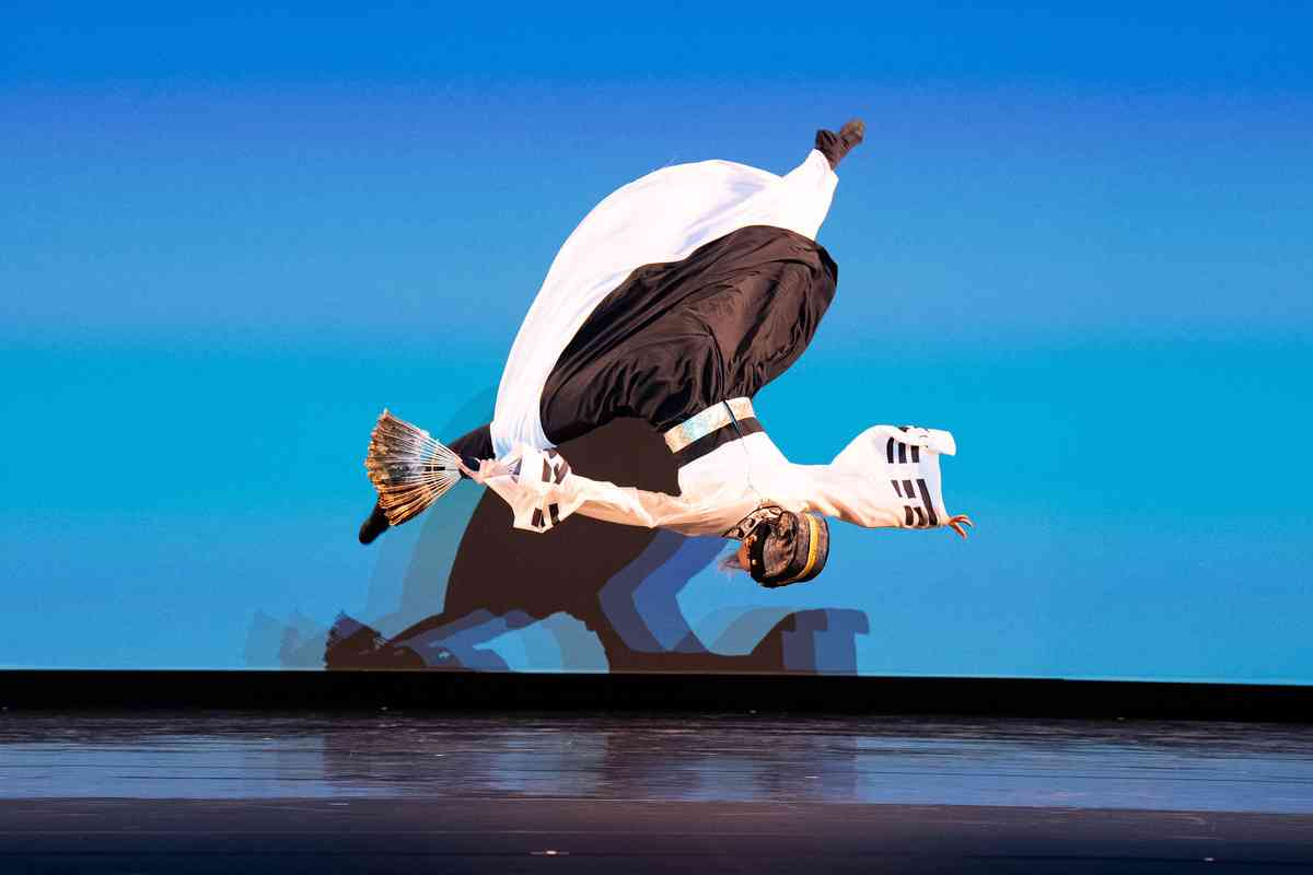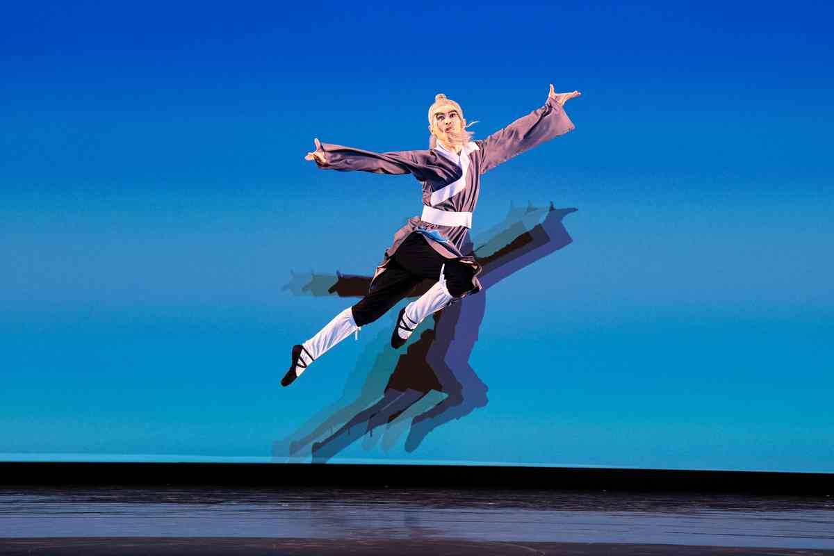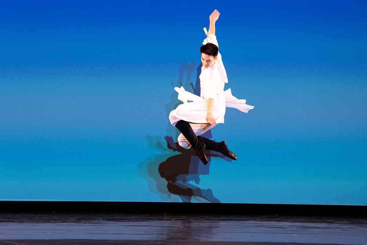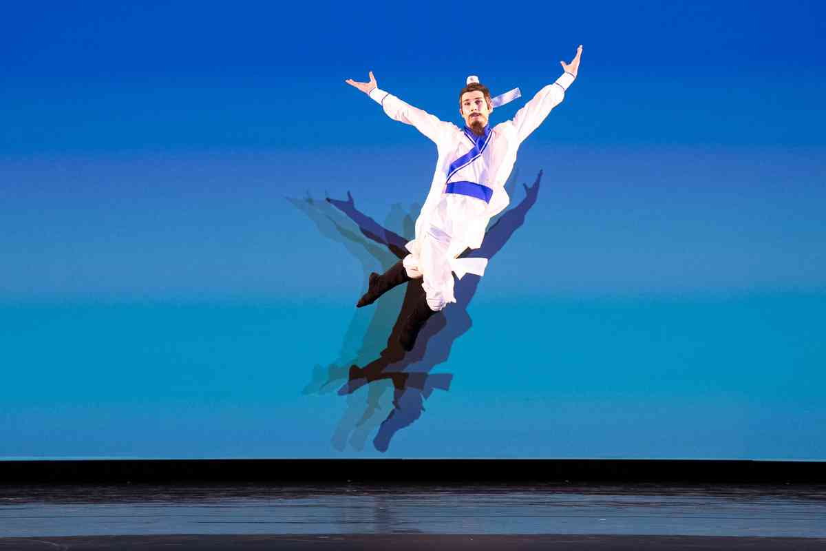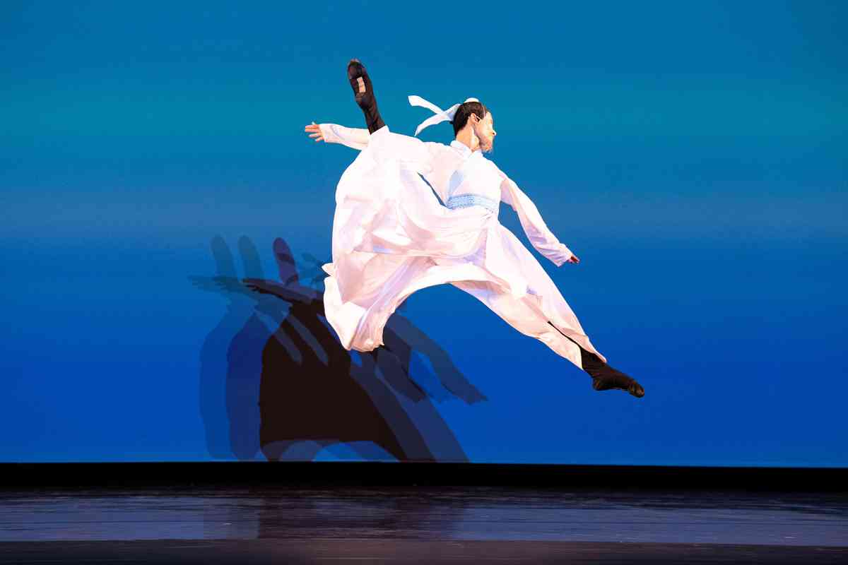 2025年9月12日,第十一屆新唐人全世界中國古典舞大賽青年男子組初賽在美國紐約州Sugar Loaf表演藝術中心舉行。圖為青年男子組參賽選手詹品俊表演舞蹈《翩若驚鴻》。(戴兵/大紀元)