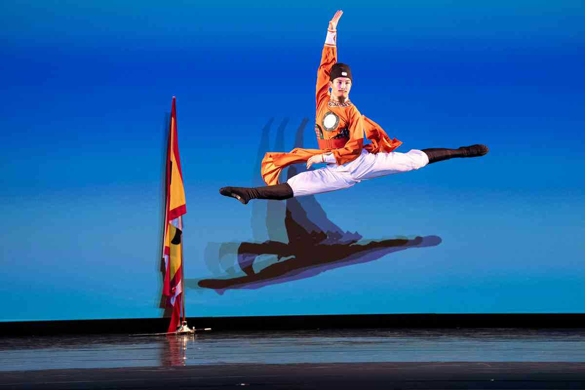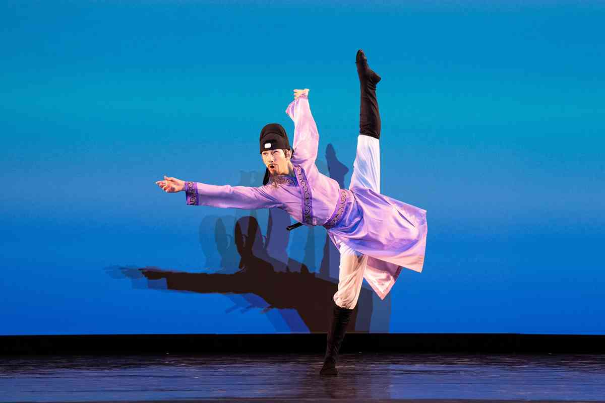 2025年9月12日,第十一屆新唐人全世界中國古典舞大賽青年男子組初賽在美國紐約州Sugar Loaf表演藝術中心舉行。圖為青年男子組參賽選手金柄吉表演舞蹈《寄餘暉》。(戴兵/大紀元)