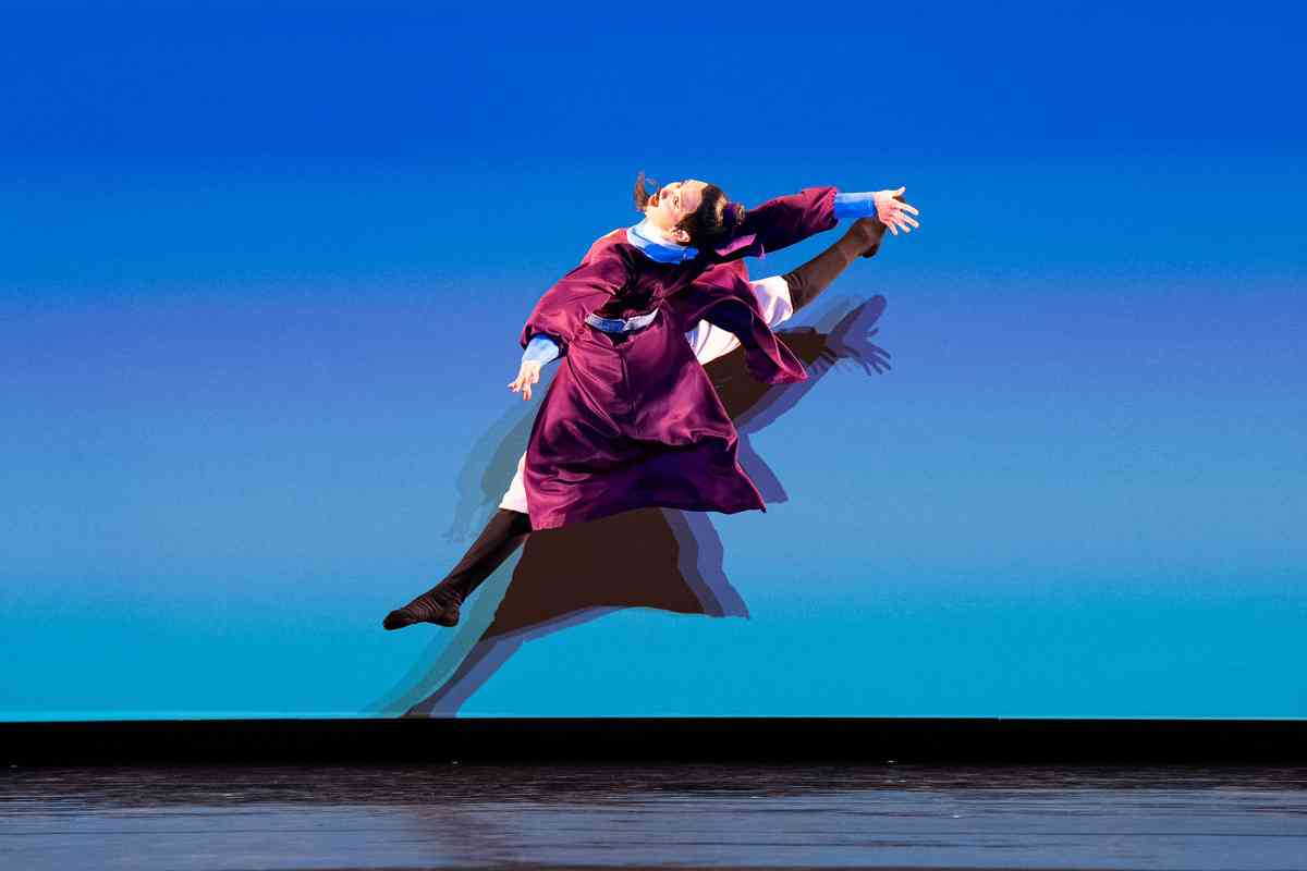 2025年9月12日,第十一屆新唐人全世界中國古典舞大賽青年男子組初賽在美國紐約州Sugar Loaf表演藝術中心舉行。圖為青年男子組參賽選手周宇明表演舞蹈《春望》。(戴兵/大紀元)