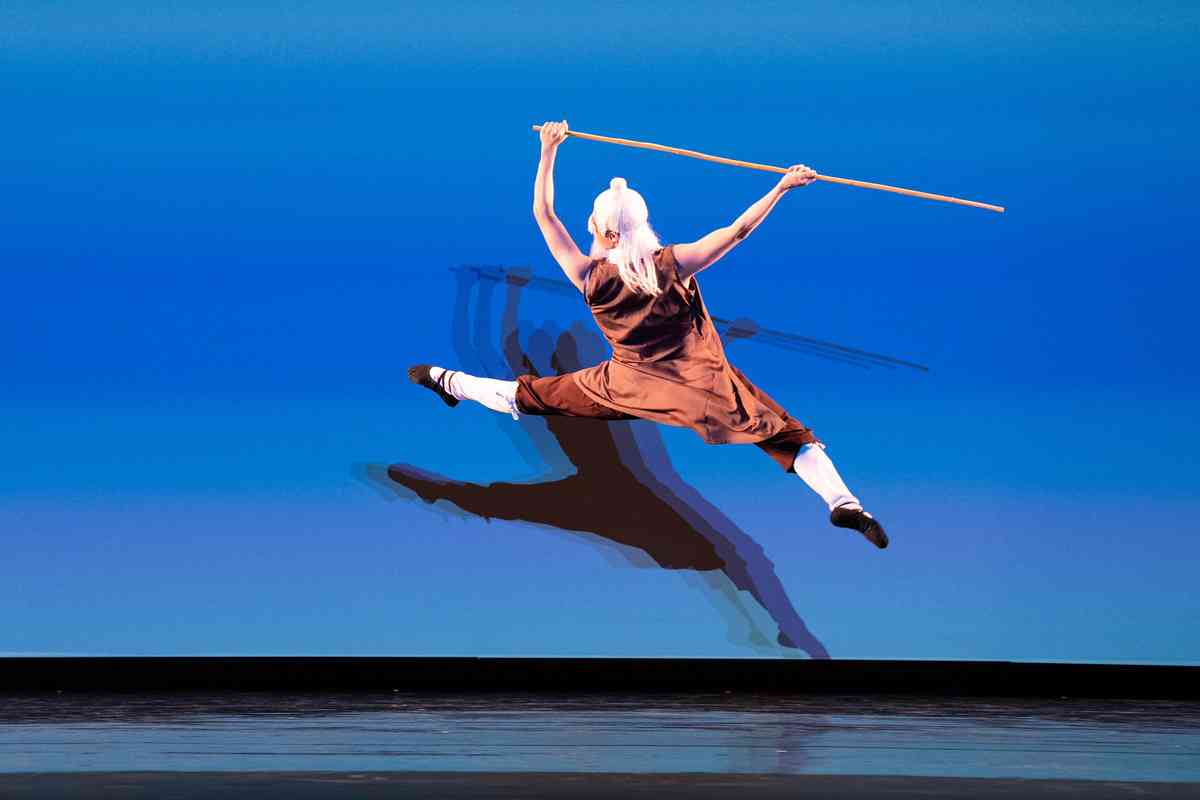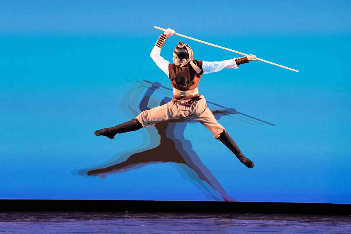 2025年9月12日,第十一屆新唐人全世界中國古典舞大賽青年男子組初賽在美國紐約州Sugar Loaf表演藝術中心舉行。圖為青年男子組參賽選手李明鴻表演舞蹈《醉棍》。(戴兵/大紀元)