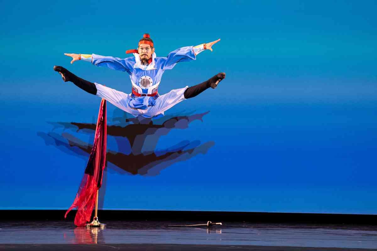 2025年9月12日,第十一屆新唐人全世界中國古典舞大賽青年男子組初賽在美國紐約州Sugar Loaf表演藝術中心舉行。圖為青年男子組參賽選手鄭元明表演舞蹈《忠華》。(戴兵/大紀元)