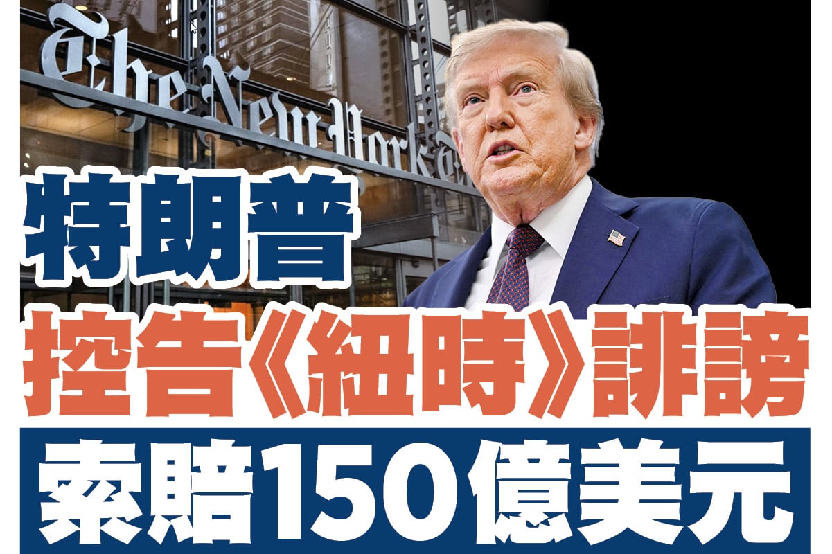 美國總統特朗普周一(15日)表示,他將對《紐約時報》(New York Times)提起誹謗與中傷訴訟,索賠金額高達150億美元。整宗事件起因於《紐時》日前刊登多篇文章探討特朗普與已故性犯罪者愛潑斯坦(Jeffrey Epstein)之間的關係。