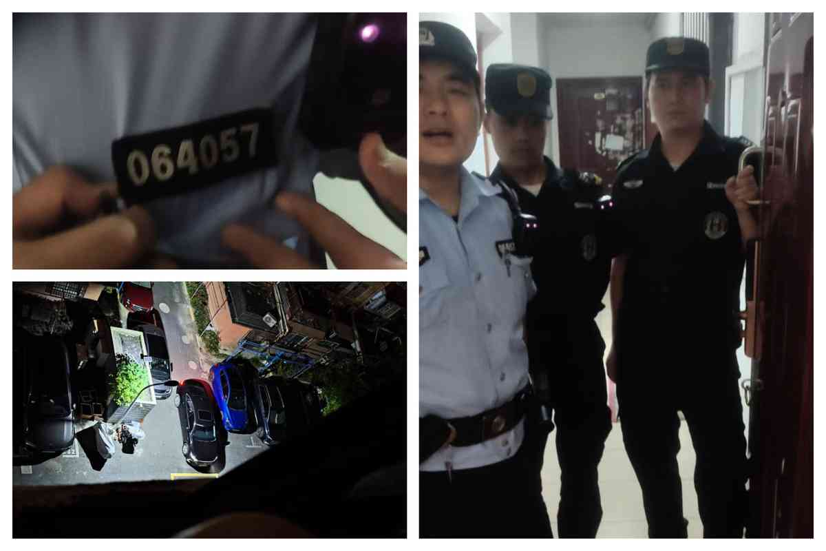 9月18日晚上,6個警察守在靜安區訪民王惠芳家門外,樓下警車旁有兩個保安,一直到19日下午3點,這些人才撤走。