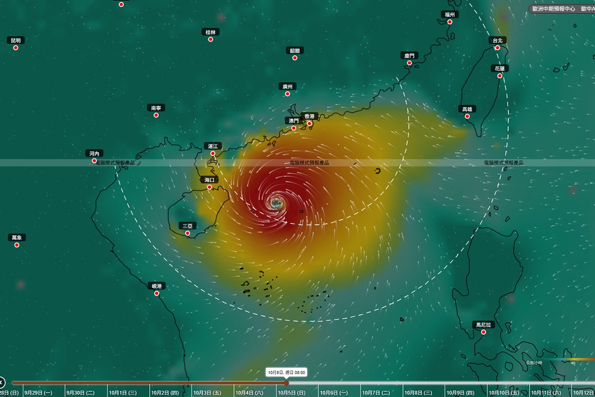 同時,天文台地球天氣網頁的另外兩個AI氣象模型「盤古」及「伏羲」及歐洲中期天氣預報中心,也預測本周後期至下周初(10月4日至6日)將有低壓區在菲律賓以東海域發展。