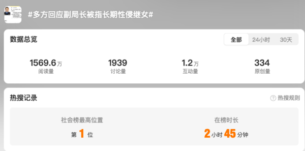北京時間9月29日深夜,標籤為「多方回應副局長被指長期性侵繼女」的話題,衝上微博熱搜第一。