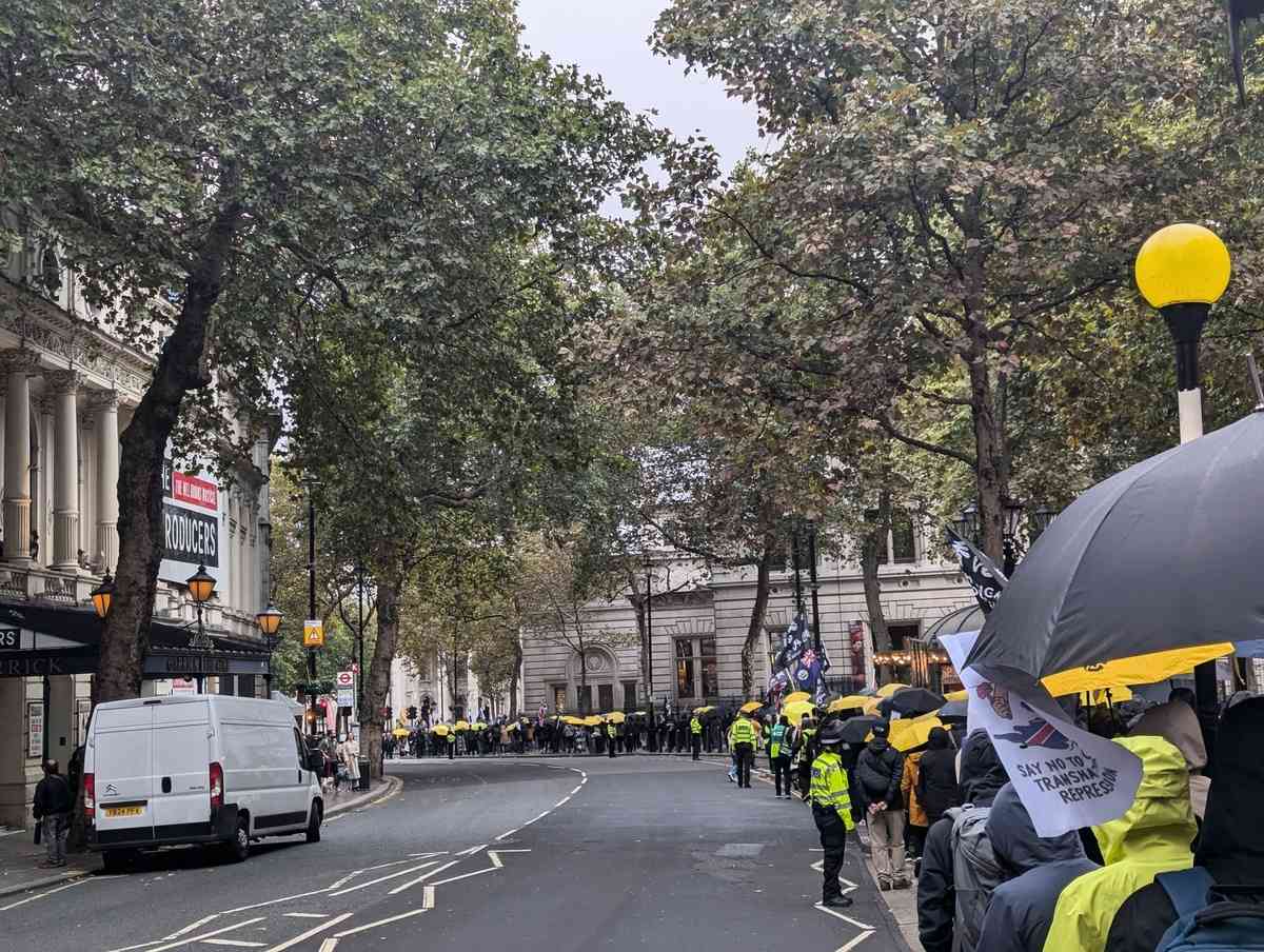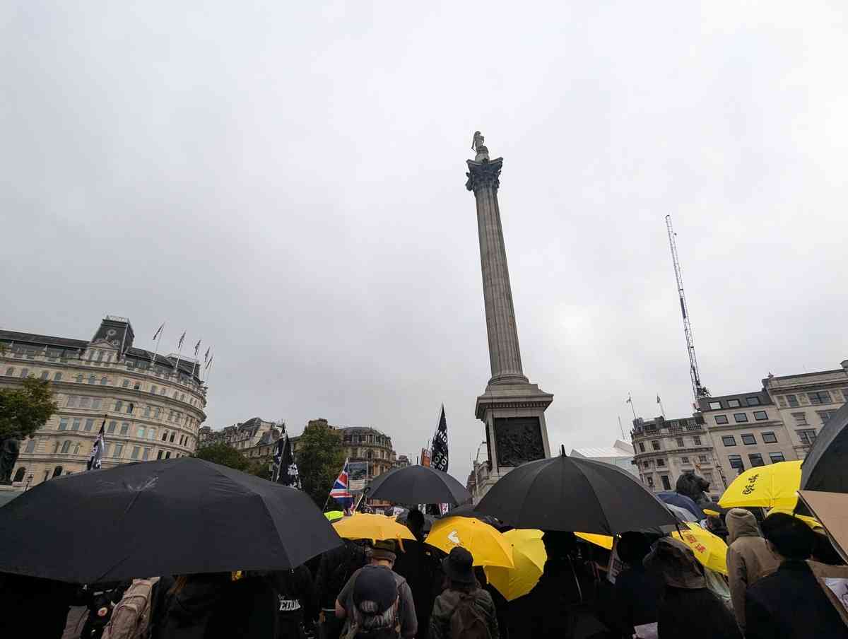 9月28日是2014年雨傘運動11周年,多個居英港人組織當日在倫敦舉行遊行,除了表達爭取香港民主自由的訴求之外,也反對英國政府打算批准把倫敦皇家鑄幣廠舊址改建成中共駐英大使館。由於下著毛毛雨,約一千人的遊行隊伍撐起黃色與黑色雨傘,穿過倫敦唐人街時高喊「No China Mega Embassy」(不要中國超級大使館)等口號,並向沿途路人派發單張。