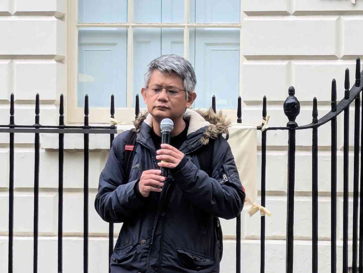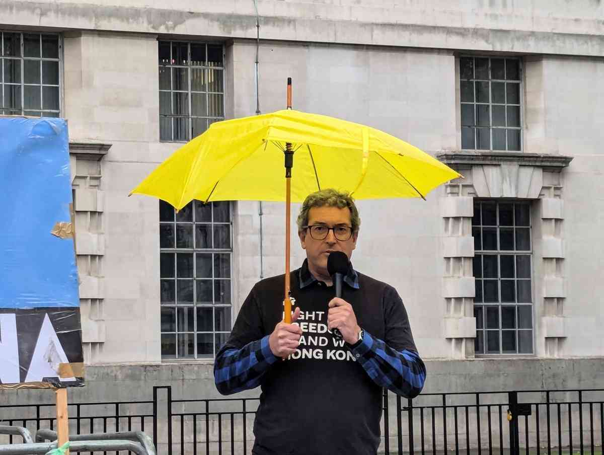 在遊行終點,英國著名人權活動家、「香港監察」創辦人羅傑斯(Benedict Rogers)發言,提及母親曾收到匿名恐嚇信,要求他停止工作,但他繼續香港發聲。他反對倫敦皇家鑄幣廠舊址改建成中共駐英大使館,因為該處會成為間諜中心,威脅在英國居住的港人和維吾爾人。