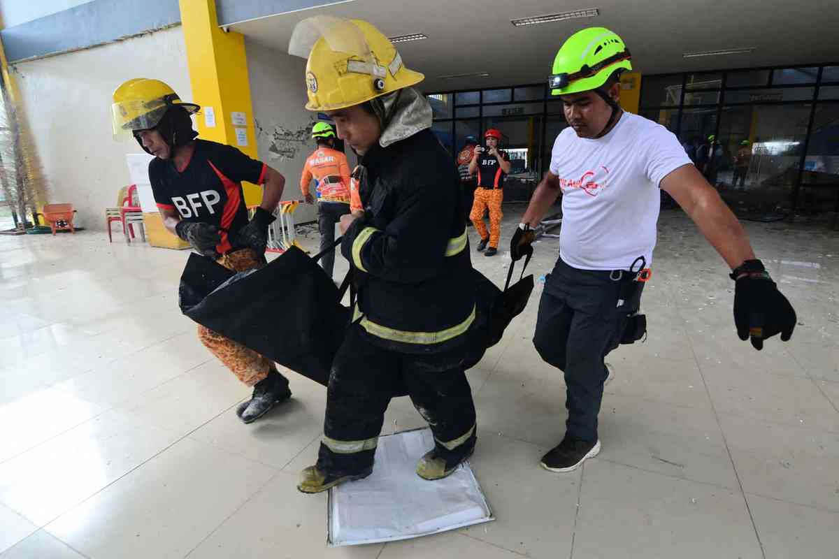 菲律賓中部於2025年9月30日晚發生的6.9級強震,導致宿務省聖雷米希奧鎮(San Remigio town)一座體育館坍塌,當時場館內正舉辦籃球比賽,釀成重大災情。圖為翌日,救援人員從現場抬出一名遇難者遺體。(Alan Tangcawan/AFP via Getty Images)