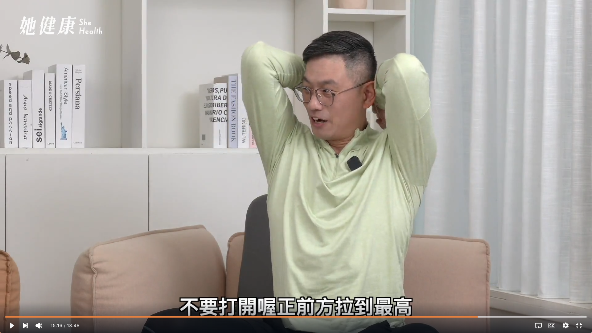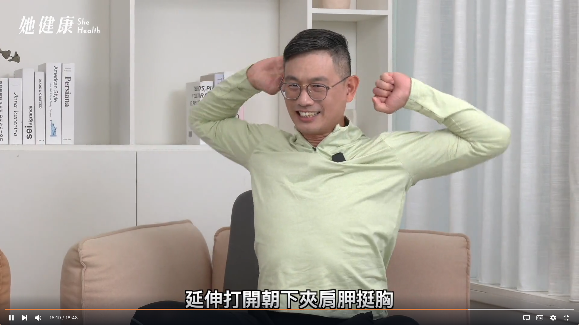 鄭雲龍亦介紹了一套簡單的肩頸放鬆與擴胸運動,透過幾個動作來幫助打開肩膀、改善姿勢,讓身體恢復活力。