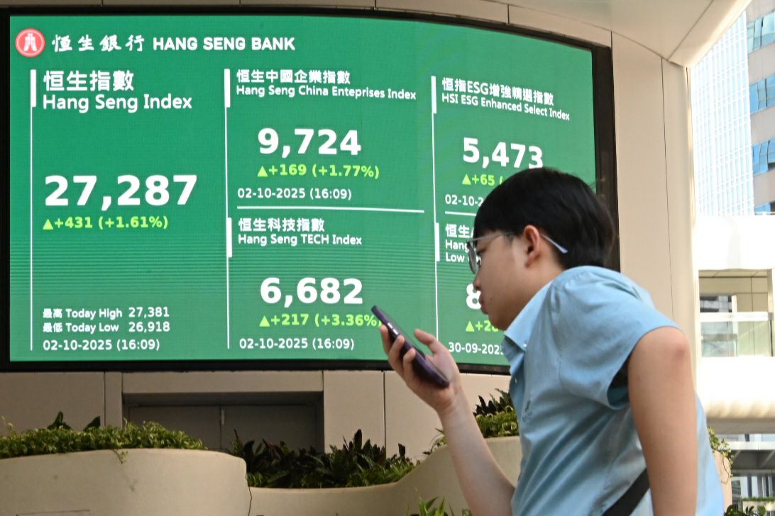 美股昨晚造好,港股飆升。恒指今(2日)早高開62點,盤中高位漲526點,收市報27,287點,上升431點(即升1.6%),成交額2,225億。國指升1.8%、科指走高3.4%。