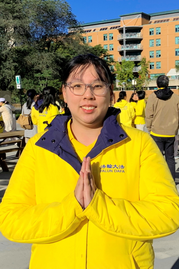 寶琳說,修煉法輪功後,她身上發生過許多奇蹟——修煉前她曾罹患癌症,身體很虛弱,走5分鐘的路對於她都是困難的事,並曾有長達7年時間都無法睡一個好覺。在開始修煉法輪功2周後,她的睡眠就恢復正常。修煉2個月後的一天,她去渥太華參加反迫害活動回來的路上,突然一瞬間她感到自己身上不好的東西消失了。那種感覺很真實,很奇妙,就好像身上的負重被拿掉了,整個人變得非常輕鬆。