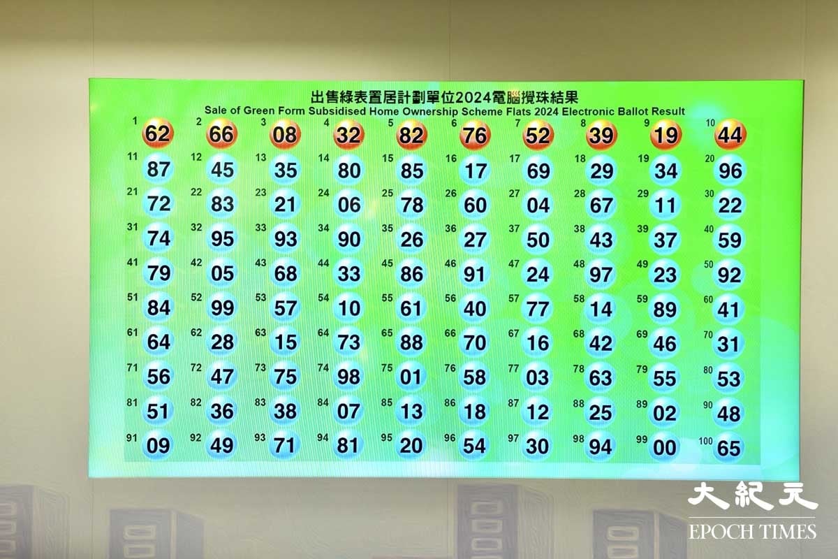 房委會今日(2日)舉行「綠置居2024」攪珠儀式,首十個號碼按序為:62、66、08、32、82、76、52、39、19、44。申請者將根據申請編號最後兩個數字的先後次序揀樓。對於會否重推租置計劃,房委會資助房屋小組委員會主席黃碧如回應在管理、維修等方面有不同意見,現時未有定案。