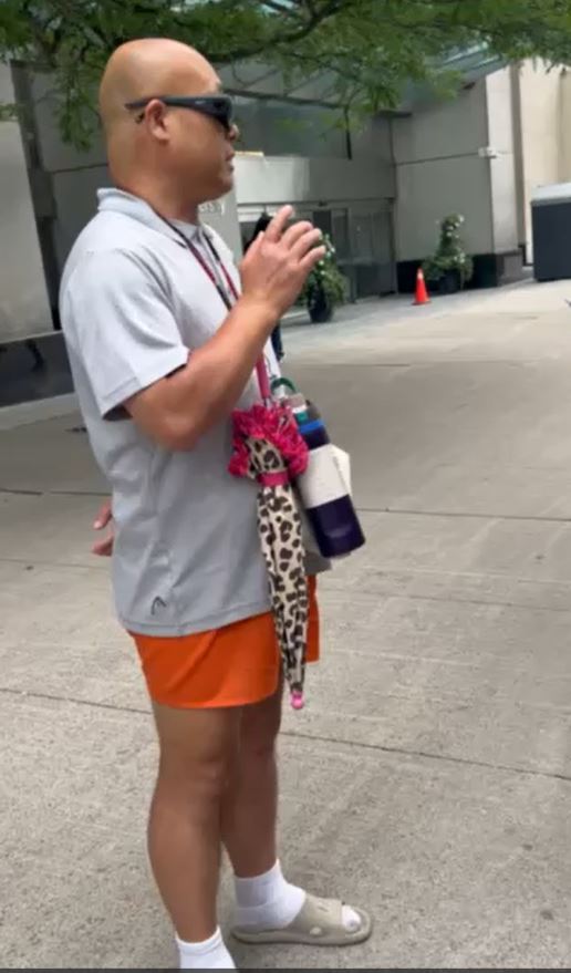 保安嚴肅對他說,「現在是你在對她們喊叫,她們沒有對你喊叫,她們可以報警」,並要求他離開。