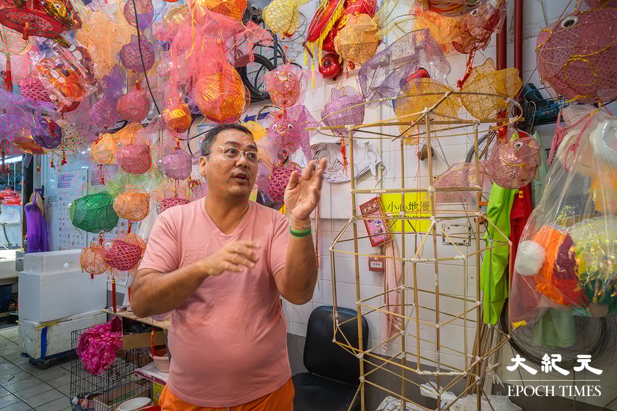 每逢中秋節,冒師傅的店舖便會售賣各式燈籠,有傳統造型如楊桃、金魚、兔子等,吸引市民前來選購。過去,元朗大橋街市的乾貨區熱鬧非常,人頭湧湧,很有節日氣氛,然而,今年情況卻不如往年。冒師傅坦言,人流明顯減少,原因在於港人北上消費的趨勢。政府數據顯示,今年四月北上消費人數比去年同期多百分之六,加上「港車北上」政策簡化,令市民更容易前往內地消費。此外,連日雨天及颱風亦影響銷情。不過,他仍寄望隨着中秋佳節的臨近,能夠扭轉頹勢。
