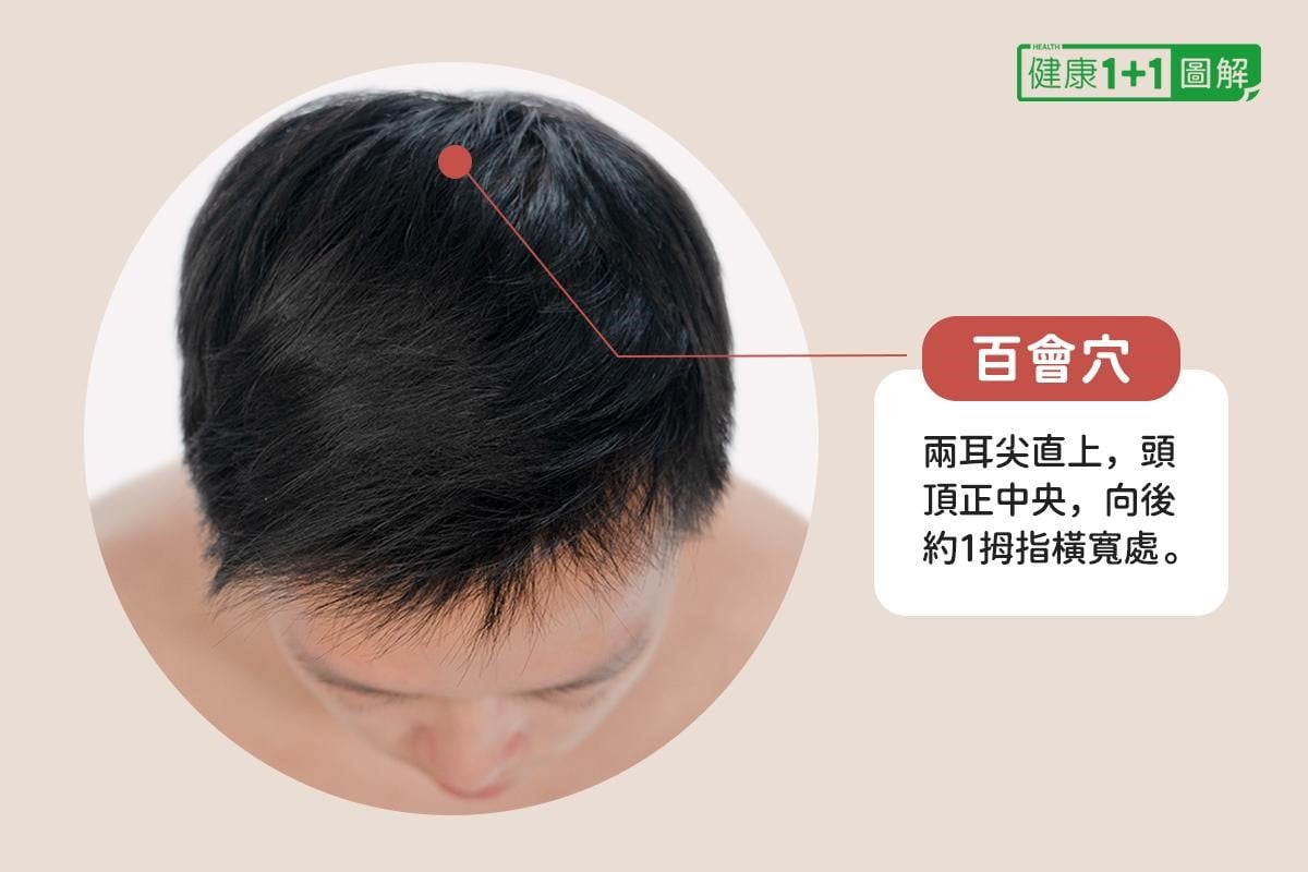 百會穴:百會穴位於兩耳尖直上,頭頂正中央,向後約一拇指橫寬處。研究表明,刺激百會穴有多種健康益處,可以緩解頭痛、頭暈,治療神經和精神疾病等。