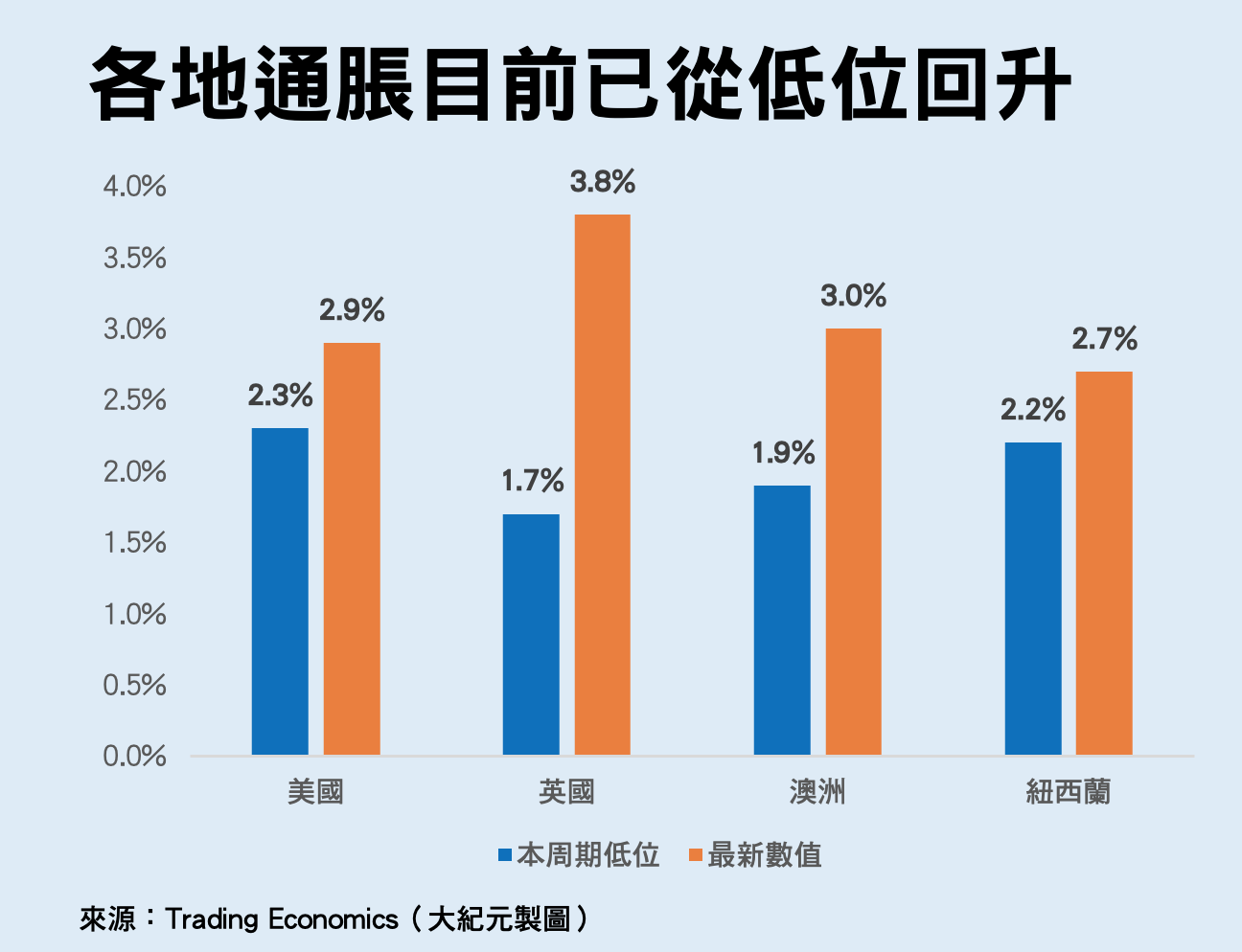 形勢不單是美國,遠在澳洲7月的CPI按年升幅突然快速抽高,從1.9%急升至2.8%,到了8月更進一步攀登至3%,見番個「三」字。澳洲儲備銀行(RBA)的目標範圍設定為2%至3%,此刻已臨至該範圍的最高位置,這正正是發生在當地減息之後。
