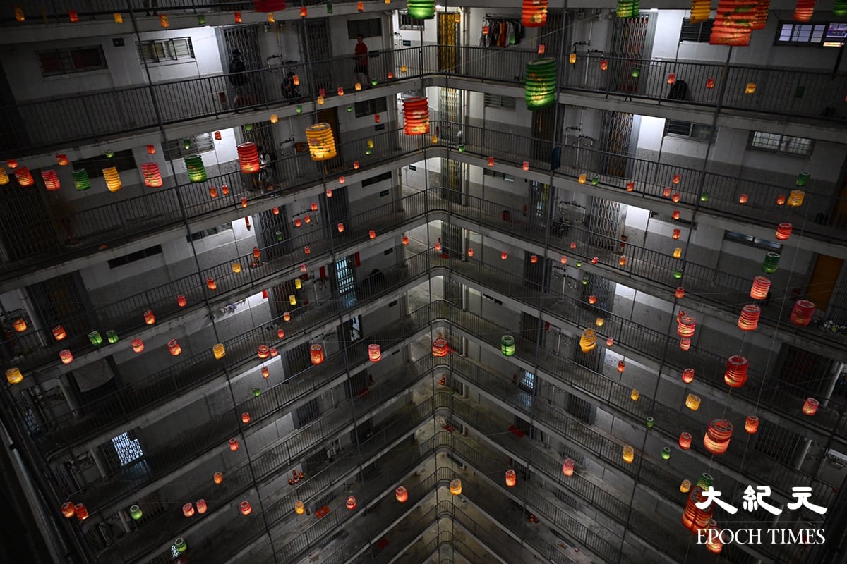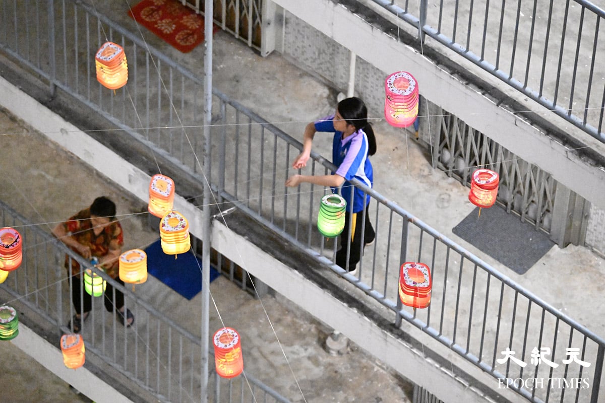 中秋佳節,象山邨今晚(6日)再擺出燈籠陣,由居民鍾先生自掏腰包及組織,一個個燈籠將大廈中央天井變成燈海,吸引同邨居民走出家門拍照、玩耍,一同慶祝佳節。