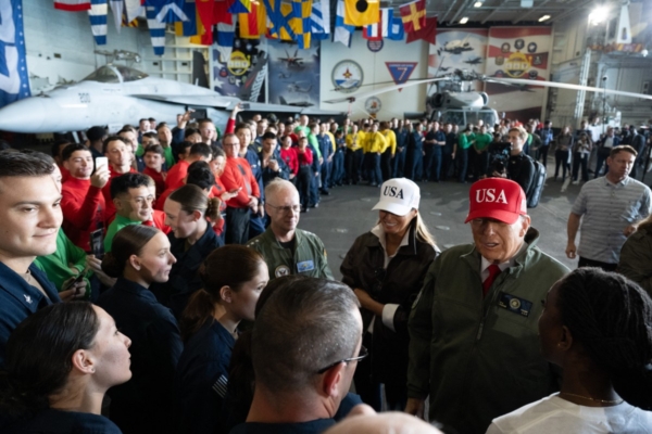 特朗普總統抵達諾福克後,受到了諾福克海軍基地指揮官馬特·施拉曼(Matt Schlarmann)上校的迎接。之後前往喬治·H·W·布殊號航空母艦(USS George H.W. Bush),與水手們交談。