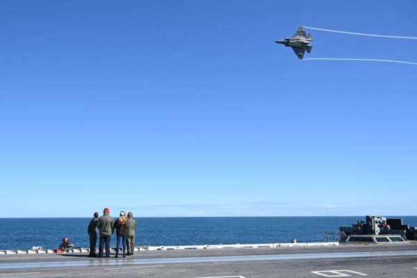 總統還稱讚美國海軍的卓越實力。他說,在激烈的戰鬥硝煙和海戰迷霧中,「美國的海軍士兵一次又一次地證明,我們的海軍是做得最好的……我們主宰天空,潛行深海,並以無人能及的方式統御海洋。」