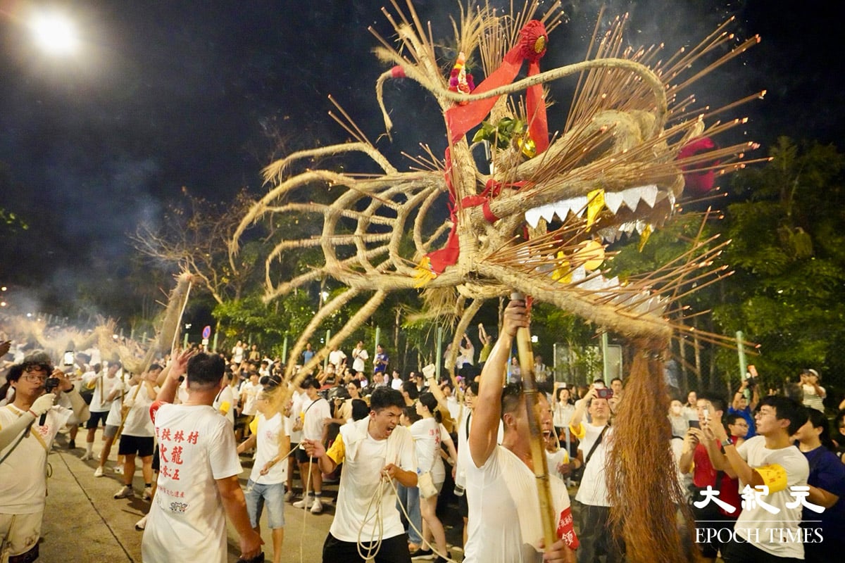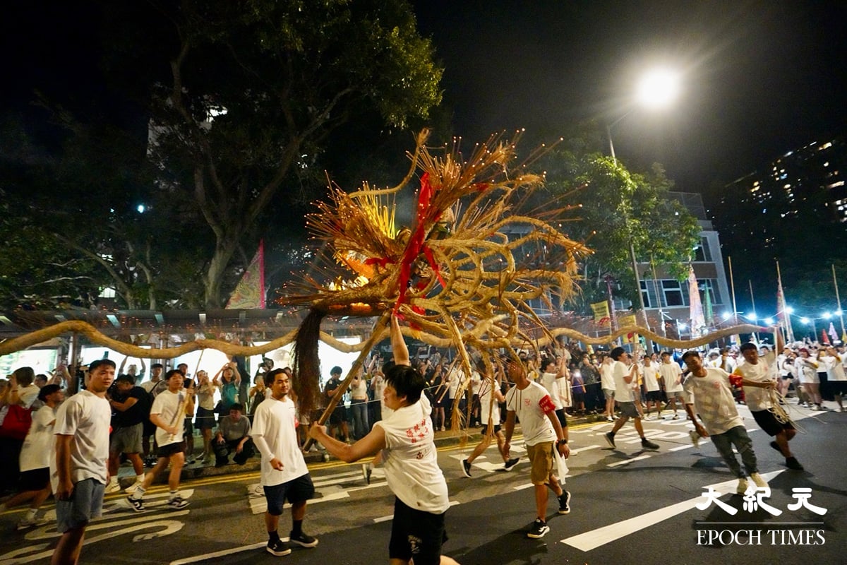 長達30米火龍由由禾草和竹枝紮作而成,上面插滿香,由超過200人的團隊舞動。隊伍從薄扶林村出發,途經華富邨,最後抵達瀑布灣,進行拜祭及龍歸滄海儀式。