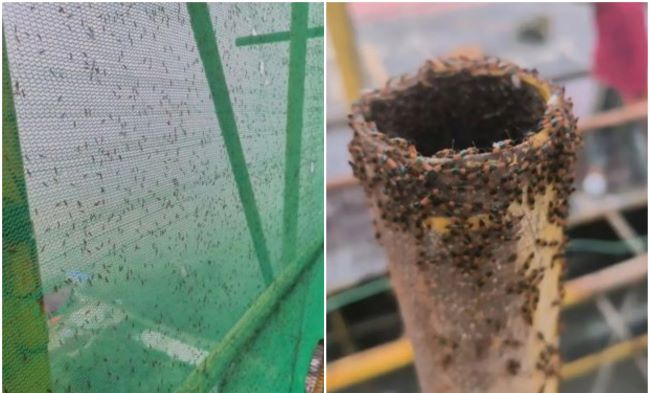 網民曝光的影片片段中可看到,在一些居民家中,陽台、客廳、衛生間到處密密麻麻的爬滿了隱翅蟲。洛陽一個建築工地的工人拍下的照片也顯示,工地上高四五米、長數十米的紗網上,以及腳手架上都爬滿了隱翅蟲。
