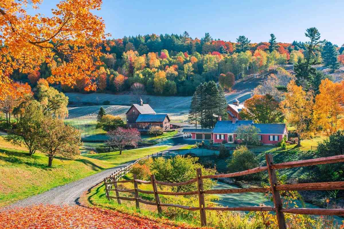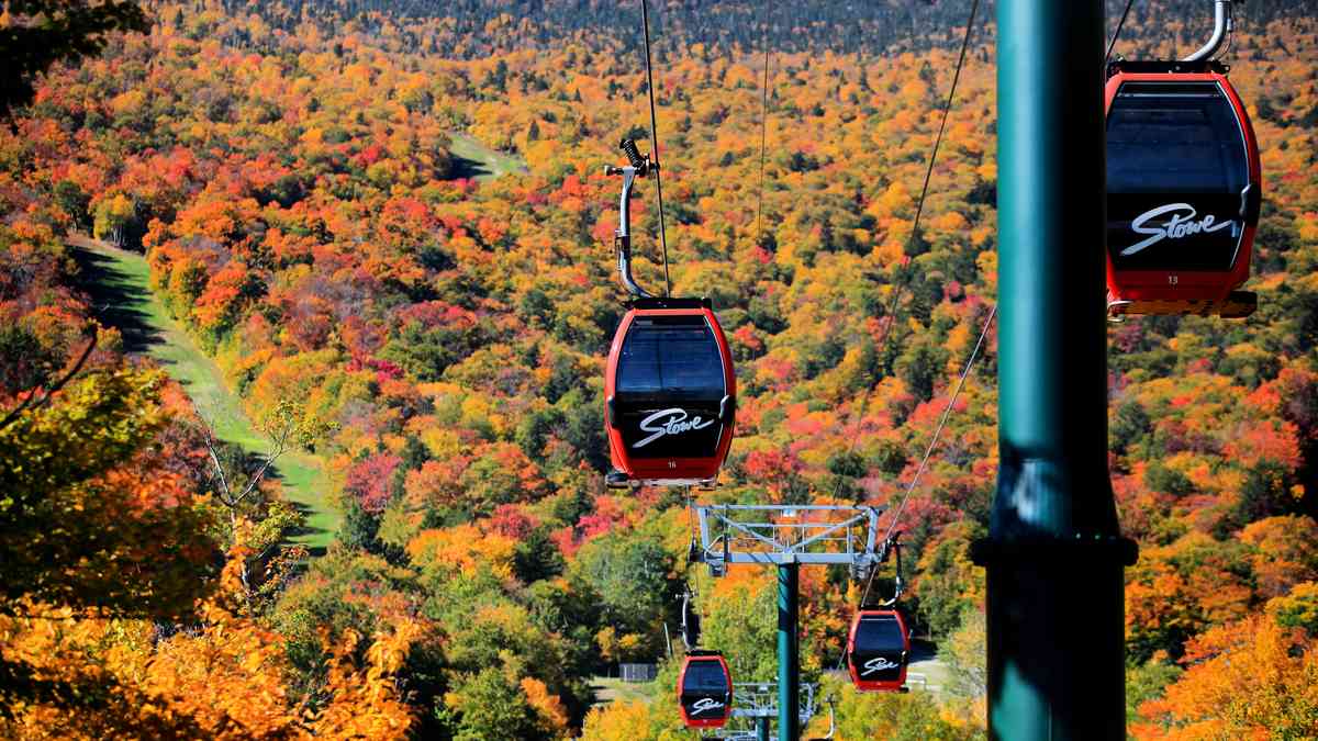 佛蒙特州斯托(Stowe,Vermont):《國家地理雜誌》將佛蒙特州評為「全世界最美的賞楓勝地」,處處是美景。沃特伯里(Waterbury)和斯托(Stowe)之間的綠山山脈是絕美的賞楓道路。