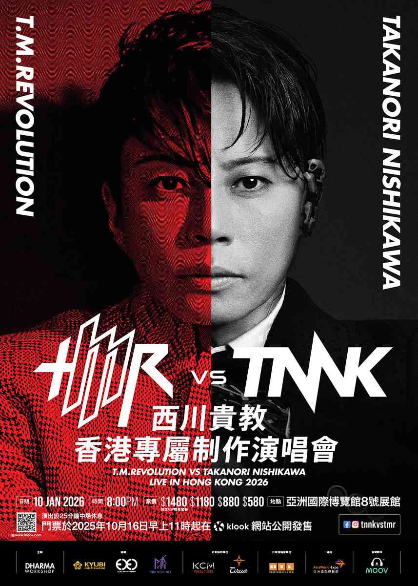 近年,他以本名「西川貴教」發行專輯《SINGularity》,並參與聲優、主持、電影展現全能藝人魅力。此次香港專屬場次《西川貴教 vs T.M.Revolution 香港專屬制作演唱會》,將是他雙重音樂身份的首次對決演出。