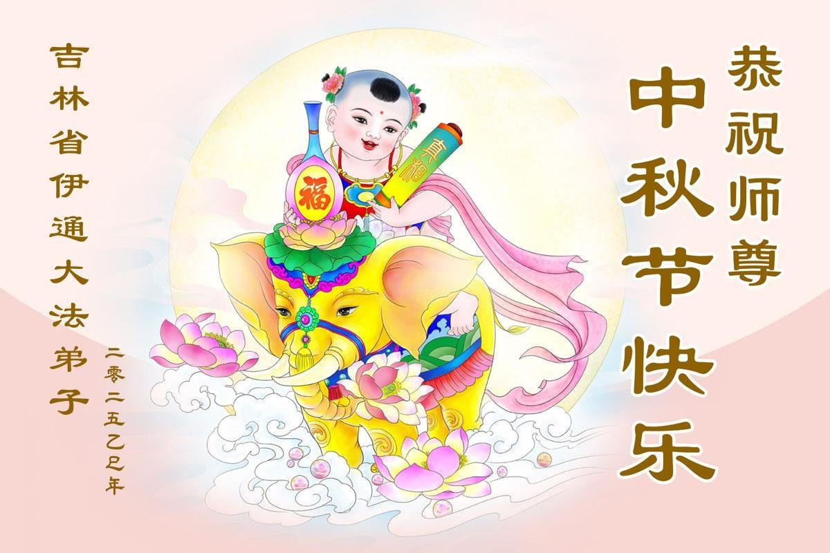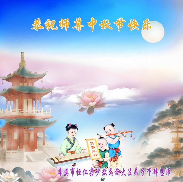 法輪功學員寫道:恭祝慈悲偉大的師父中秋節快樂!感恩師父慈悲救度!師父您辛苦了!