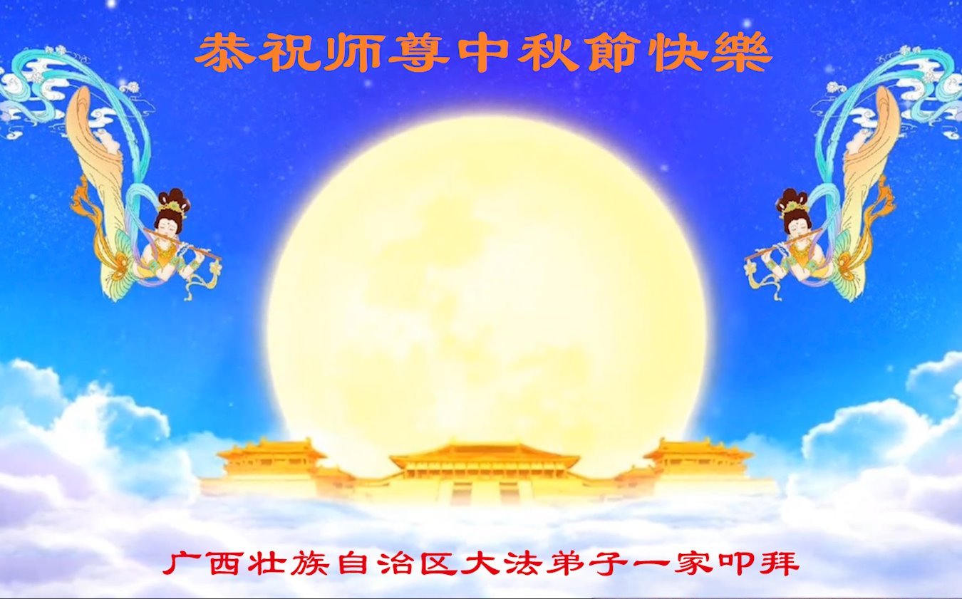 廣西壯族自治區大法弟子一家恭祝慈悲偉大的師尊中秋節快樂