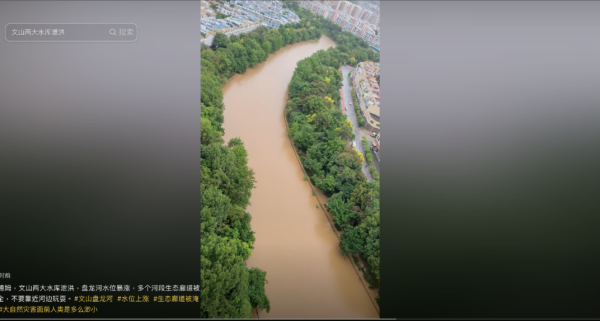 10月7日,雲南文山兩大水庫泄洪,盤龍河水位暴漲,多個河段生態廊道被淹。